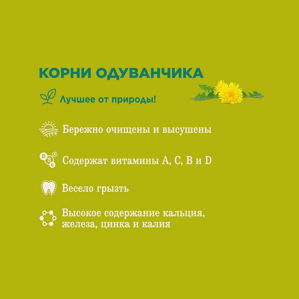 Корни одуванчика являются не только излюбленным лакомством для всех видов декоративных животных, но и полезной добавкой к их ежедневному рациону. Стачивая зубы, питомец будет получать кальций и другие минеральные вещества, содержащиеся в корнях.