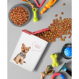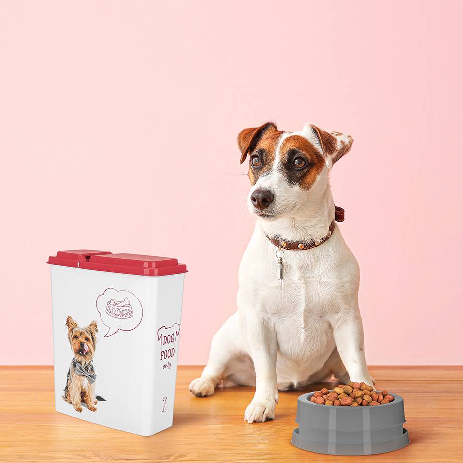 Плотно закрывающаяся крышка предотвращает заветривание корма, попадание влаги, света и вредителей, сохраняя вкусовые качества продукта. Откидная часть крышки фиксируется в открытом положении до характерного щелчка, это позволит удобно насыпать корм в миску. Прямоугольная форма позволяет оптимально расположить емкости на полке. Яркий декор надежно держится на изделии, не смывается водой и не повреждается в процессе использования. Контейнер изготовлен из пищевого пластика. В зависимости от плотности сухого корма, размера и формы гранул, контейнер может вместить от 1 до 2 кг корма.