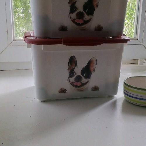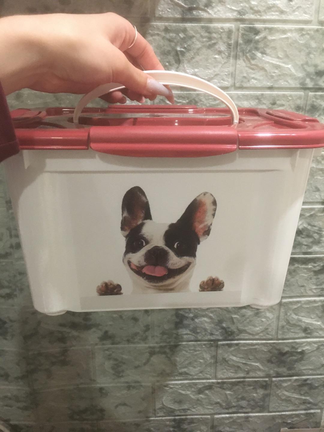 Удобно хранить корм, крышка плотно закрывается, ручка спокойно выдерживает вес полной коробки.