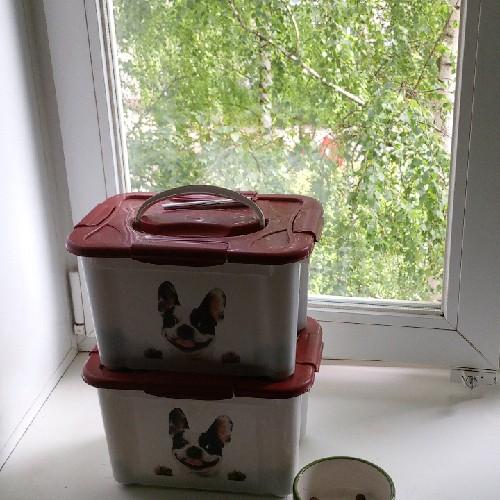 Удобный контейнер для хранения корма! Не прозрачный,крышка закрывается плотно! Контейнер с ручкой,что очень удобно! Пачка корма 3 кг поместилась не вся,но корм у нас для мелких пород!