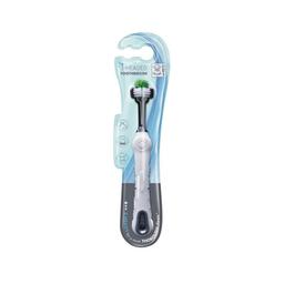 Трехсторонняя конструкция щетины позволяет чистить зубы во всех направлениях. Щетка имеет длинную, удобную, текстурированную ручку, чтобы человеку было удобно ее держать, чтобы она не выскальзывала из руки во время проведения процедуры.
