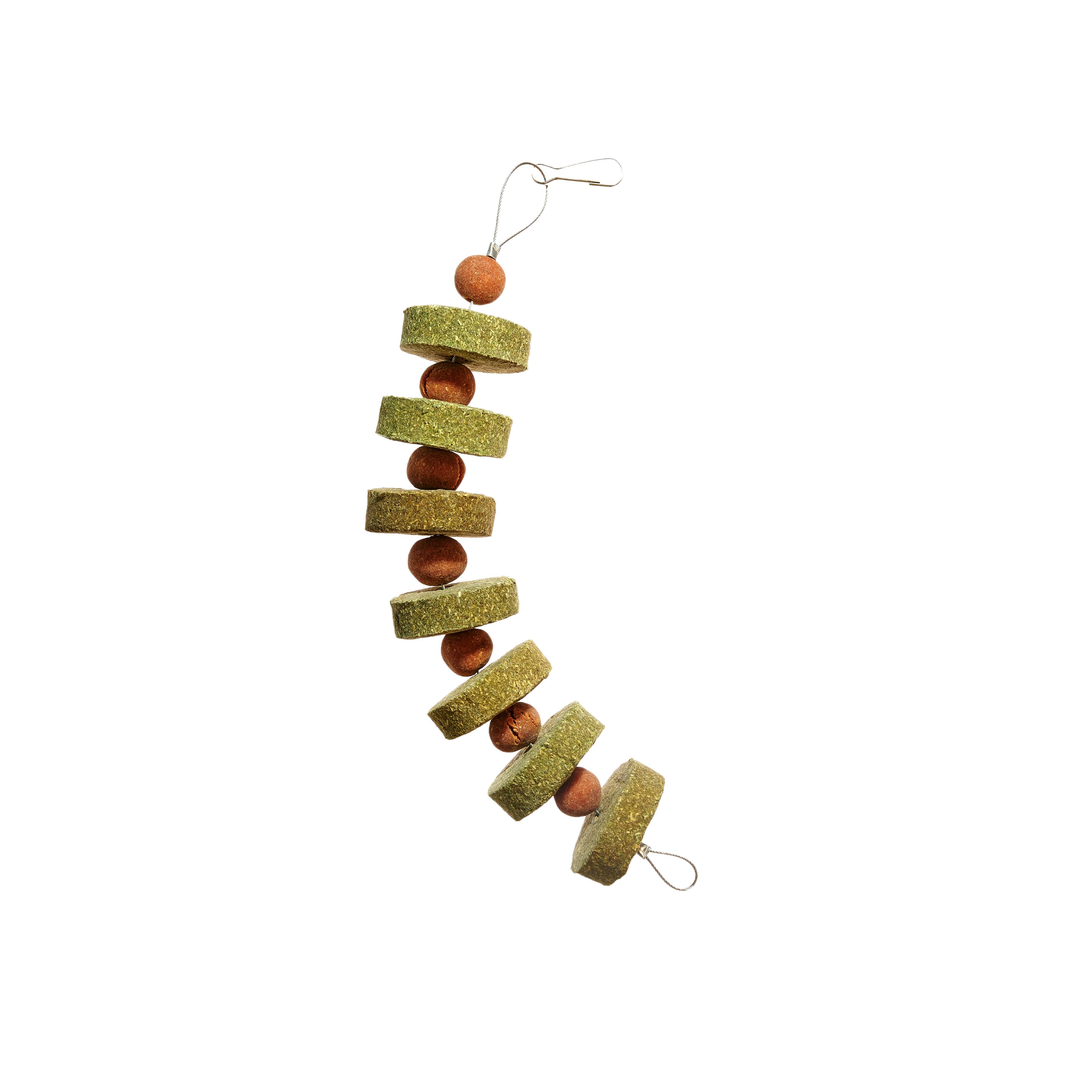 Преимущества: Игрушка для птиц связка из травяных шариков, не даст скучать вашему питомцу. Игрушка выполнена из натуральных материалов. Размеры (Д*Ш*В): 350 мм x 80 мм x 80 мм