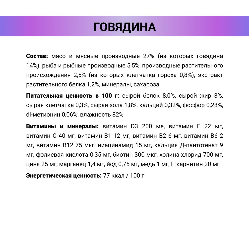 Вкусный влажный корм, кот съедает весь пакет, легко достать из уголков пакета. Покупаю в качестве угощения по пятницам и праздникамКомментарий