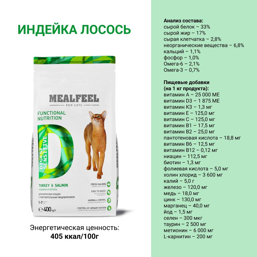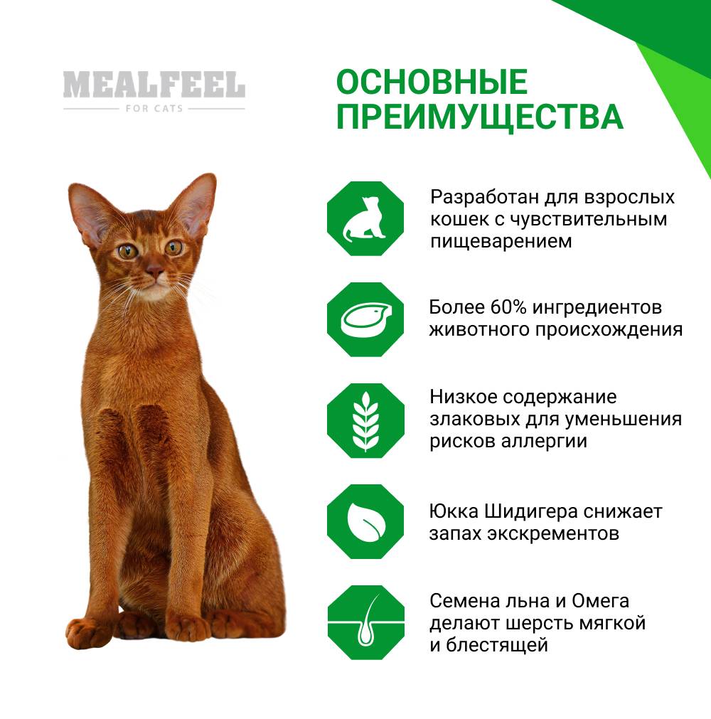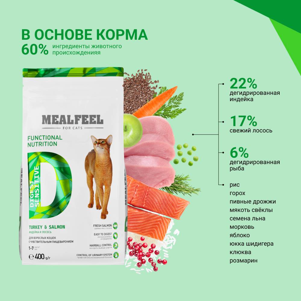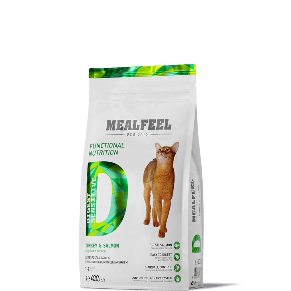 MEALFEEL DIGEST SENSITIVE – сухой рацион на основе свежего мяса, разработанный специально для кошек с чувствительным пищеварением.