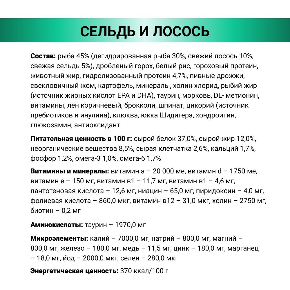- Высокое содержание рыбного белка для энергии и тонуса мышц;