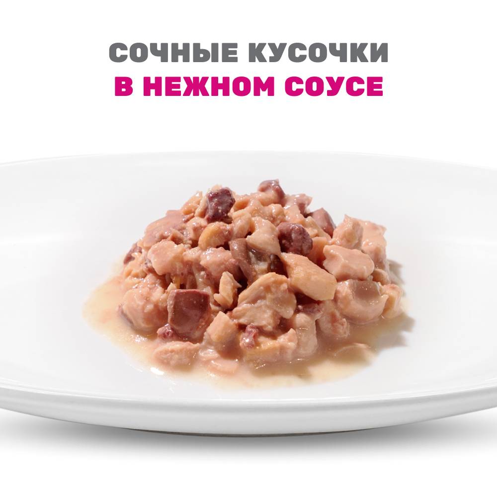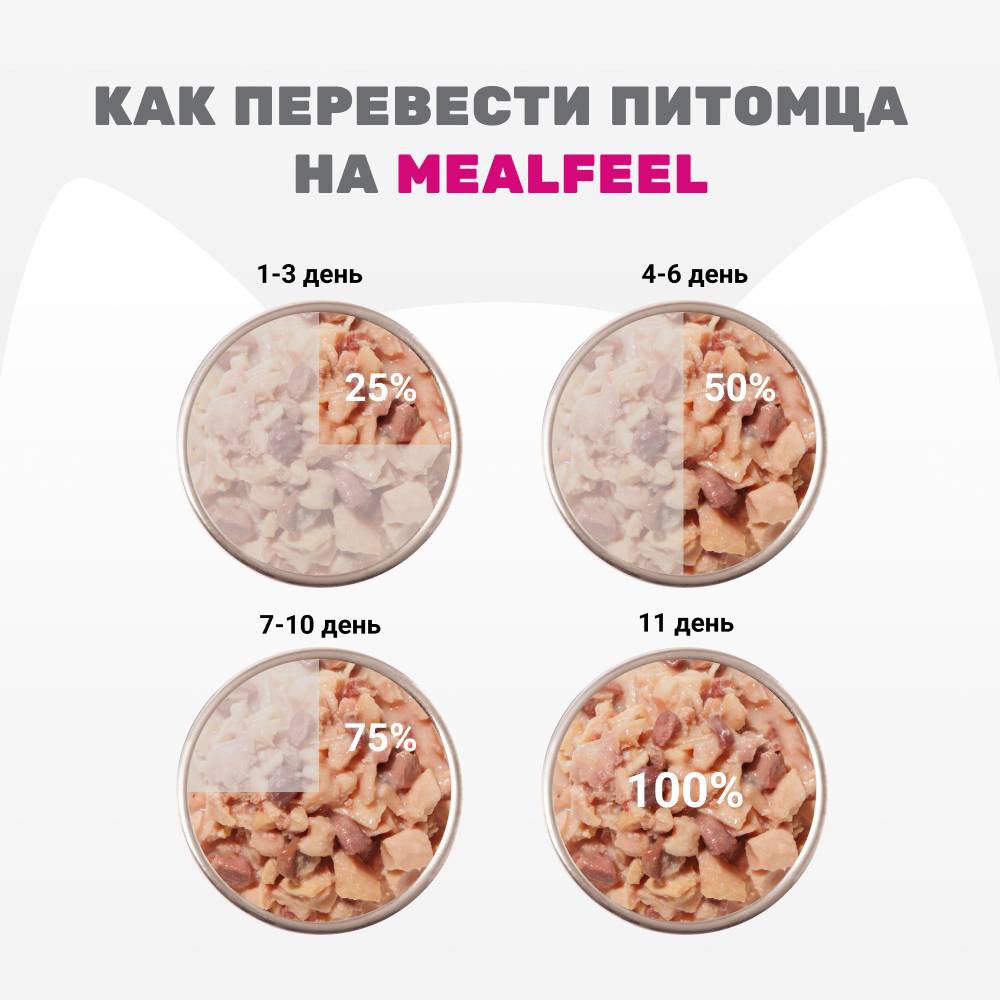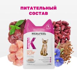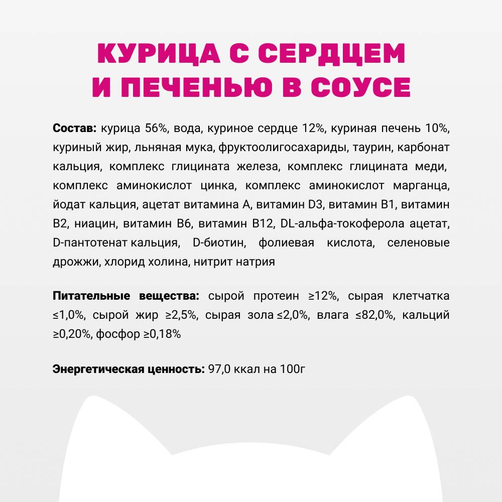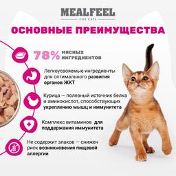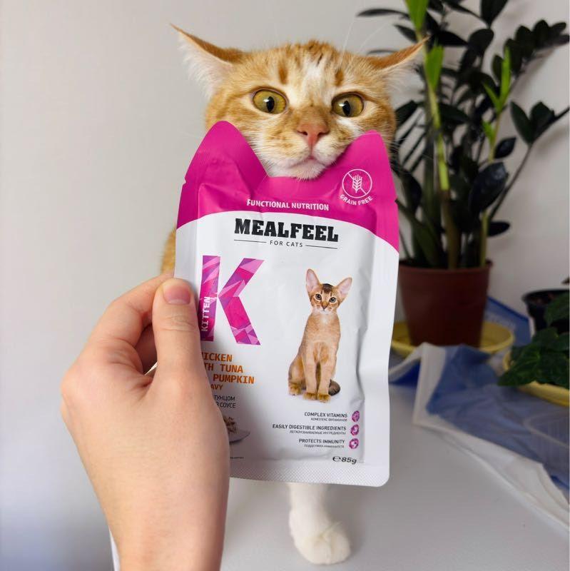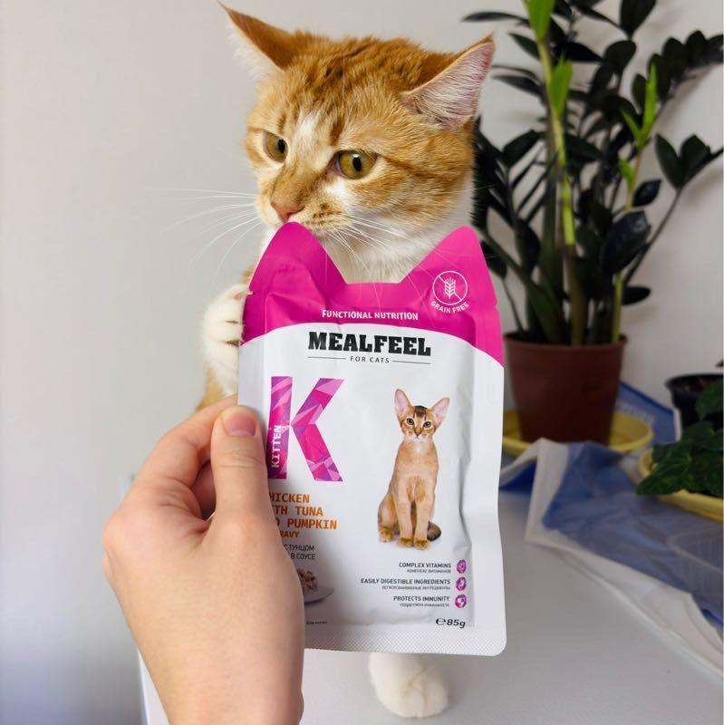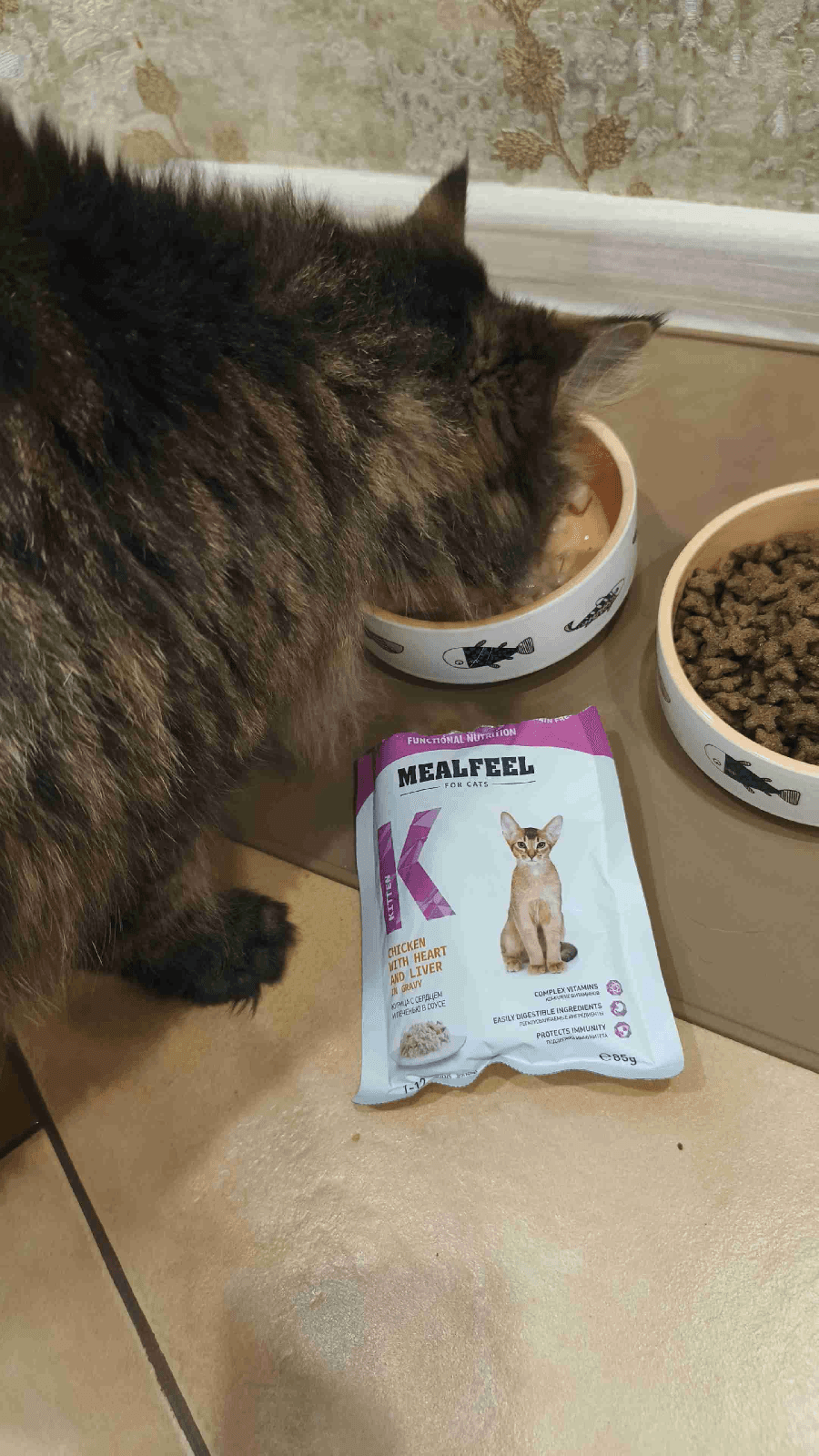 Mealfeel с курицей, печенью и сердцем в соусе – полнорационный влажный корм для котят. Сочные кусочки в нежном соусе обладают изысканным вкусом и содержат комплекс полезных веществ для роста и развития.