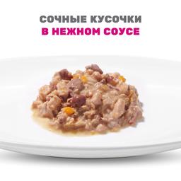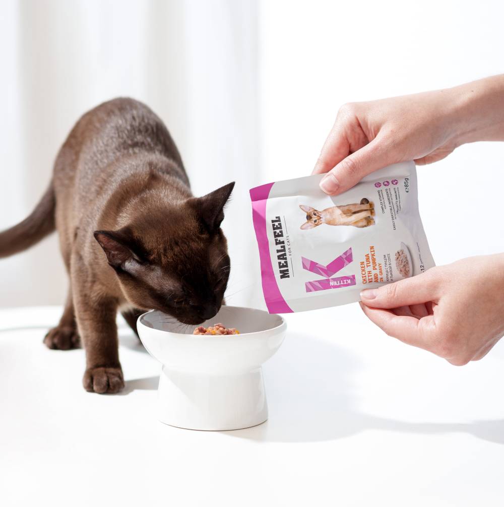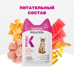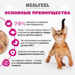 Mealfeel с тунцом и тыквой в соусе– полнорационный влажный корм для котят. Сочные кусочки в нежном соусе обладают изысканным вкусом и содержат комплекс полезных веществ для роста и развития.