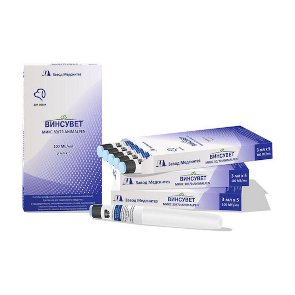 ВИНСУВЕТ микс 30/70 ANIMALPEN применяют собакам для лечения сахарного диабета, требующего инсулинотерапии.