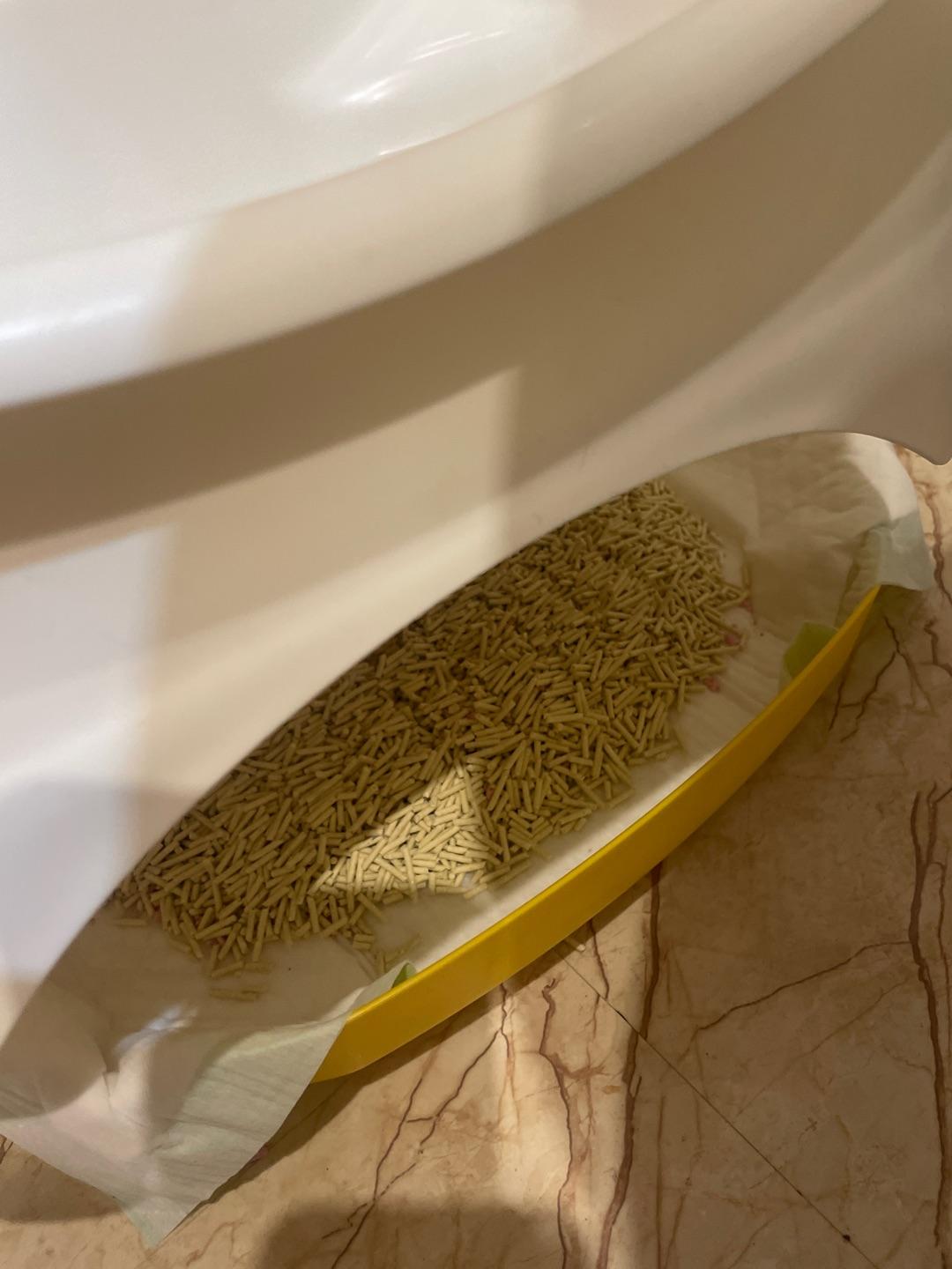 - Сверхпрочное комкование. При соприкосновении с жидкостью гранулы образуют прочные комки, которые удобно утилизируются в унитаз.