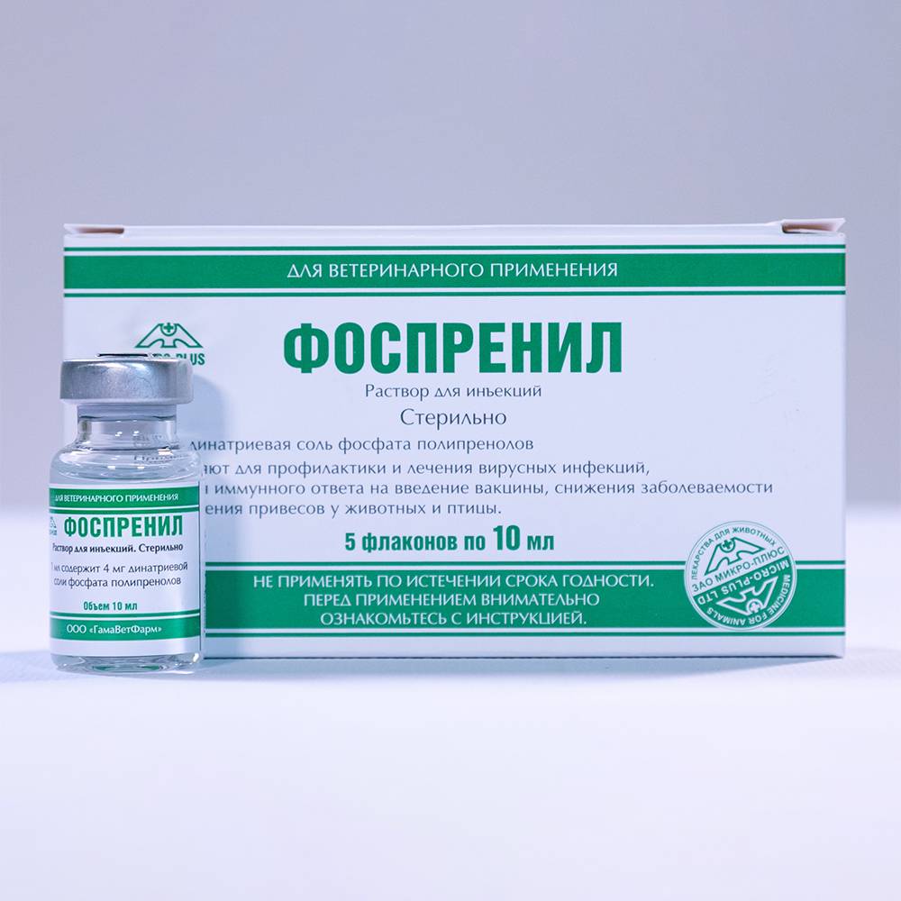 Фоспренил 10 мл МИКРО-ПЛЮС – противовирусный препарат, который содержит качественные компоненты, укрепляющие иммунную систему. Эффективно противостоит вирусным заболеваниям. Предусмотрен для роста и правильного развития домашнего питомца. Обладает противовоспалительными действиями и повышает уровень устойчивости к различным инфекциям.