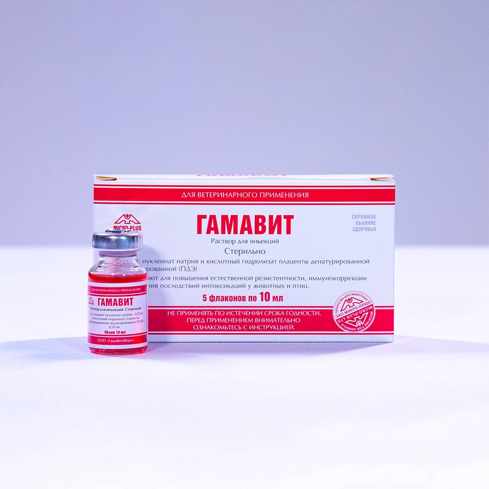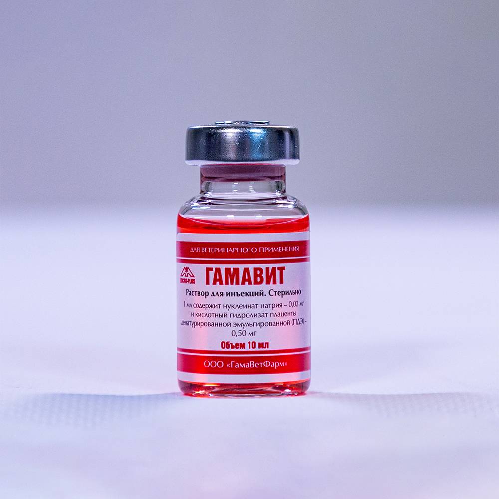 - С целью профилактики Гамавит вводят по 0,1 мл/кг массы тела животного (профилактическая доза).