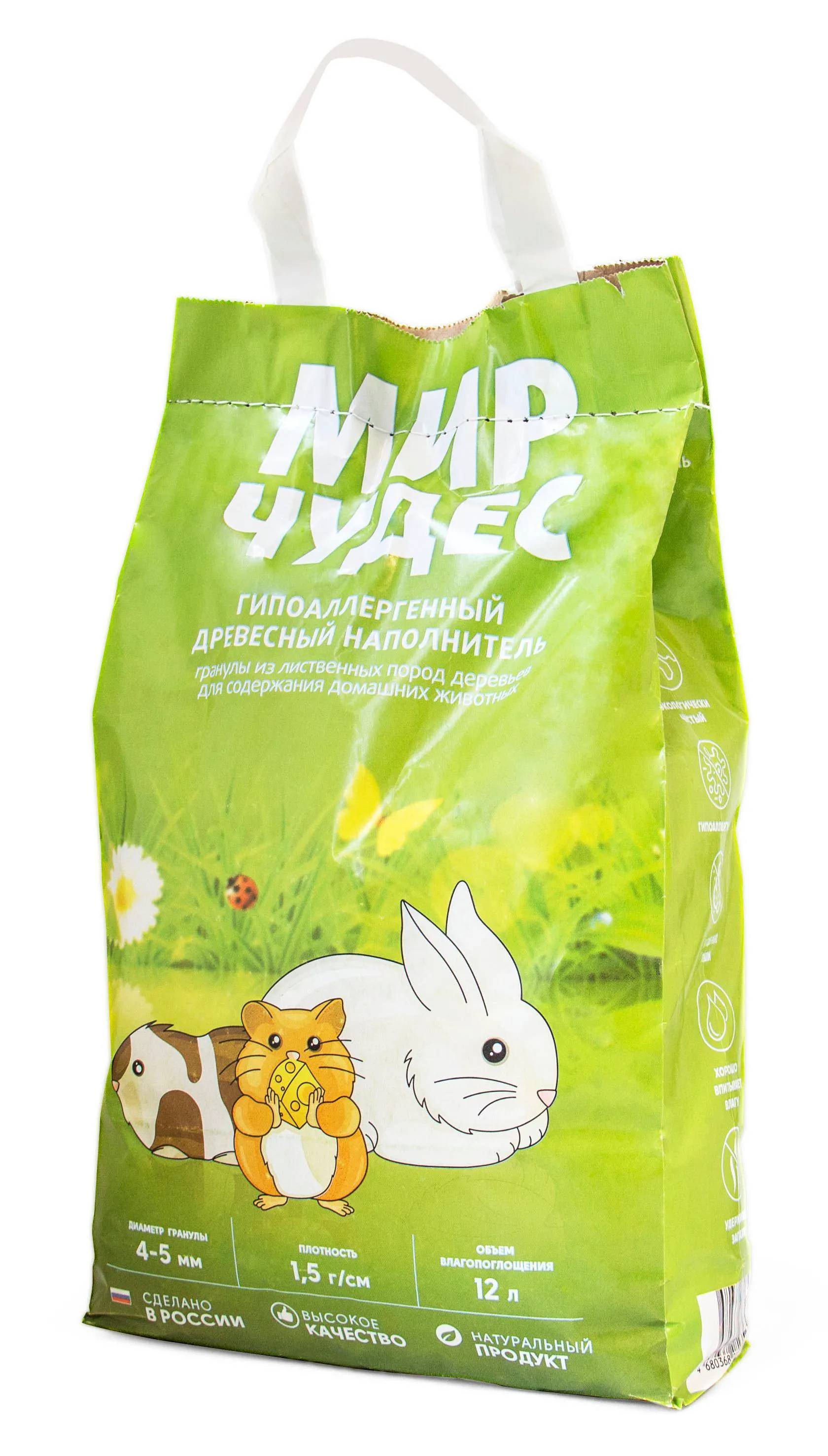 Мир чудес Наполнитель гранулированный гипоаллергенный, из лиственных пород древесины, для грызунов, 4,5 л