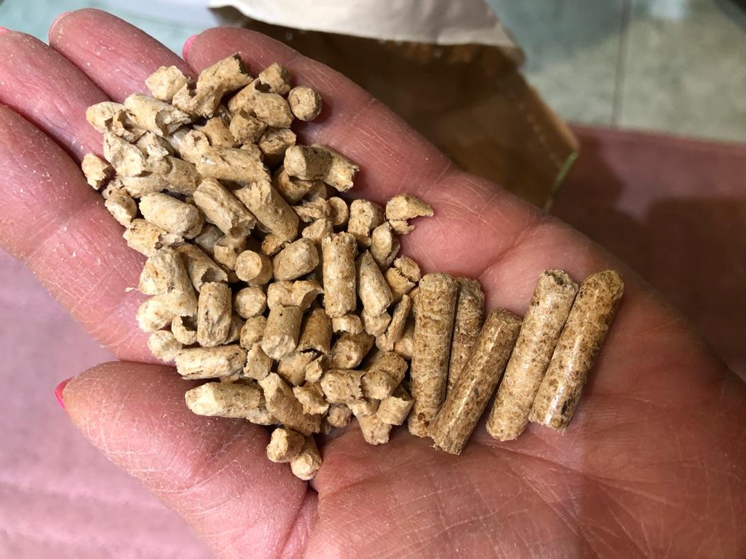 Очень мелкие гранулы. На фото для сравнения березовый другого производителя, возможно, для грызунов это плюс, я брала для кота. Присутствует неприятный запах, что странно. Искала специально древесный наполнитель из лиственных пород деревьев (береза самое оптимальное), но здесь вообще не указан состав опилок, из которых прессуют гранулы.Татьяна К.