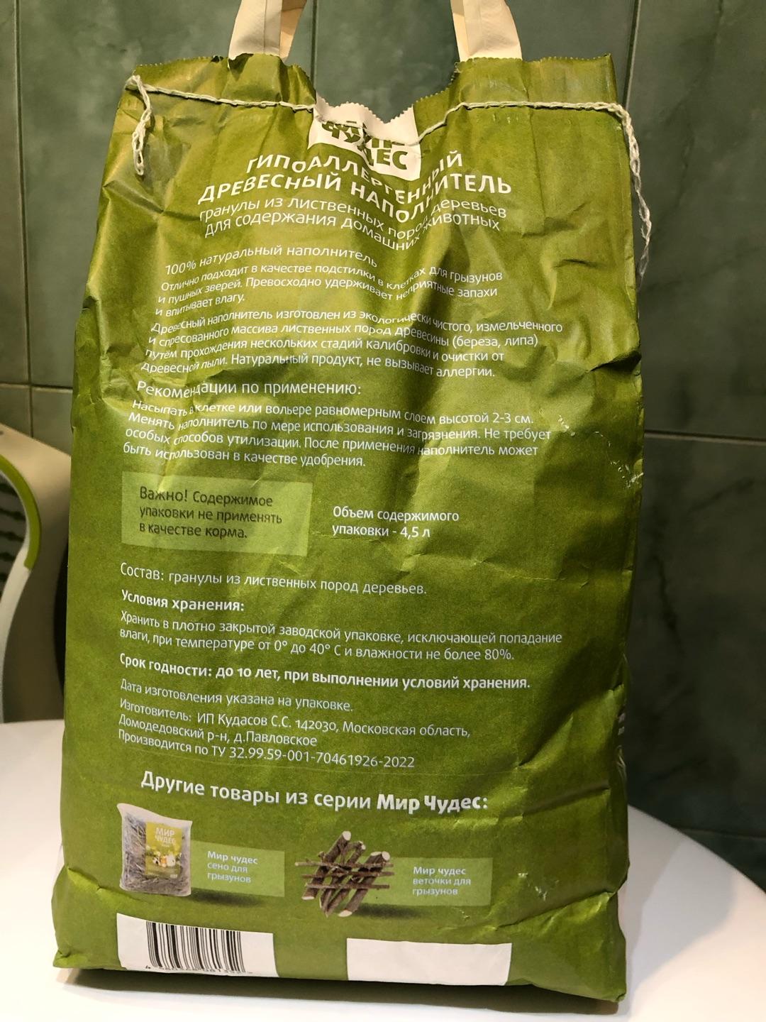 Наполнитель просто супер! Мои шиншиллы в восторге! Ходят в туалет только в этот наполнитель! Рекомендую, для шушиков очень хороший! Гранулы не рассыпаются!Оксана К.