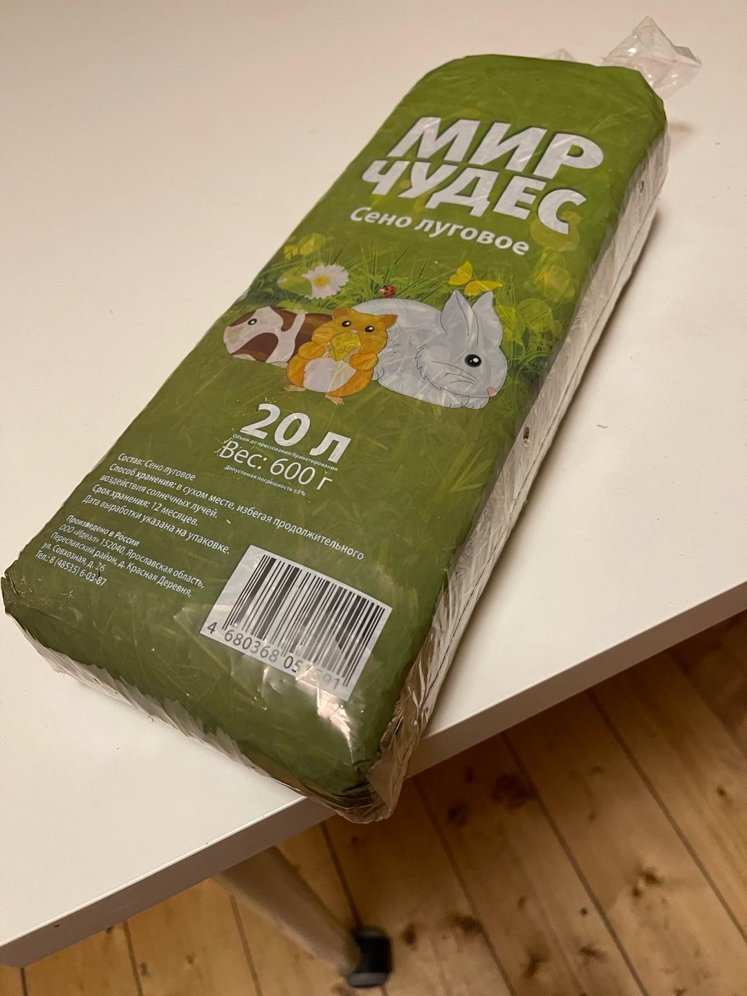 Хорошее сено для подстилки. Хорошо упаковано в плотный тюк. Достаточно нежное и кролик его ест тоже