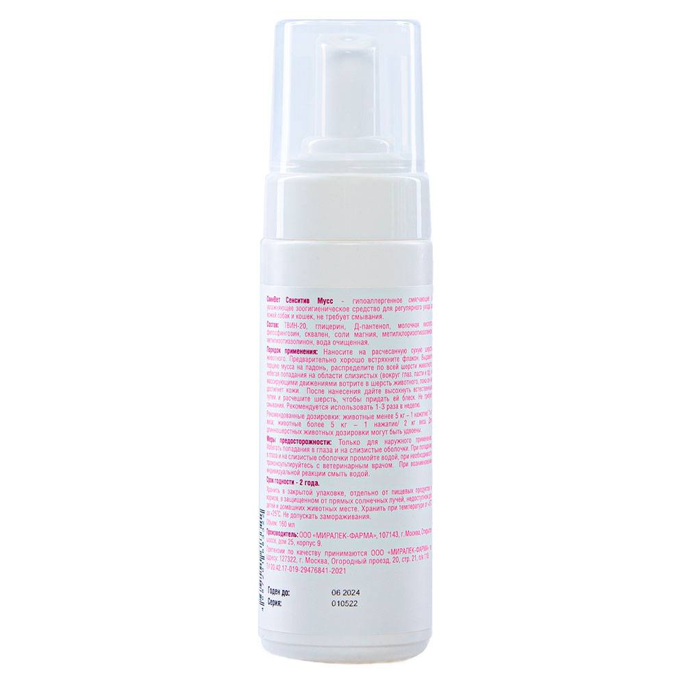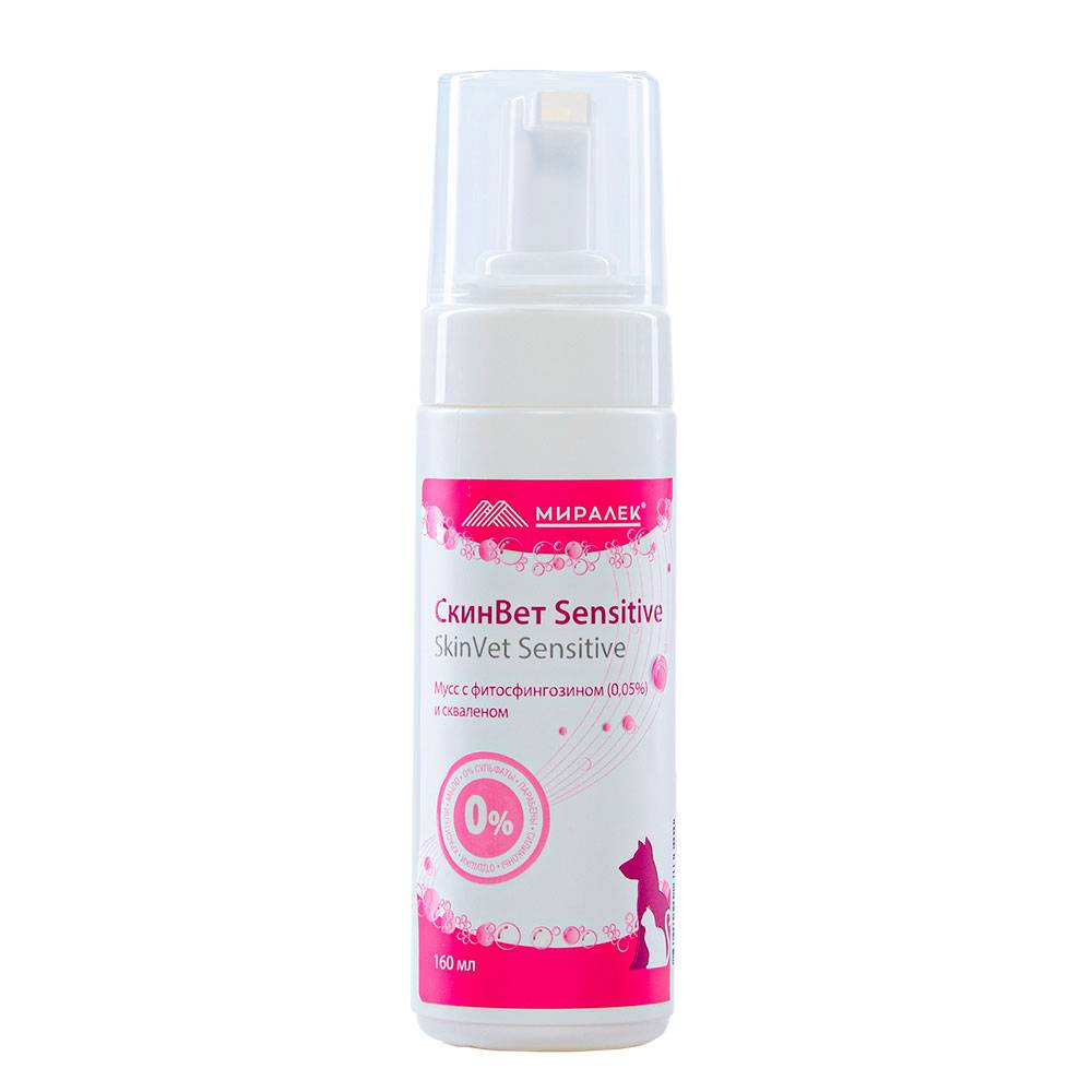 «Мусс Скинвет Sensitive» со скваленом и фитосфингозином применяется для лечебного ухода и профилактического ухода за кожей животного, может применяться в качестве очищающего средства, смягчает кожу и шерсть животного. Сквален и фитосфингозин в составе мусса способствуют удержанию влаги и восстановлению липидного барьера в коже, оказывают противовоспалительное действие.