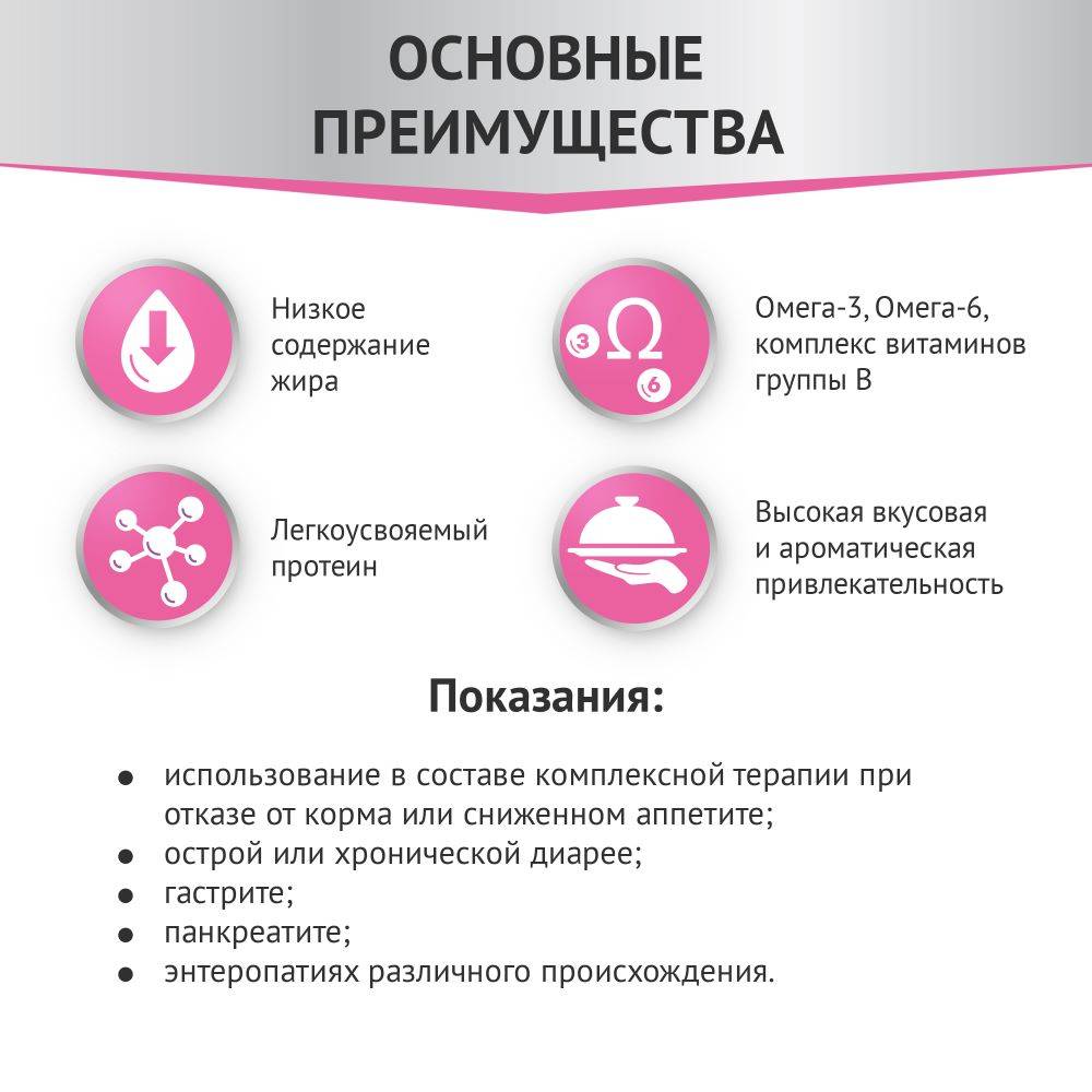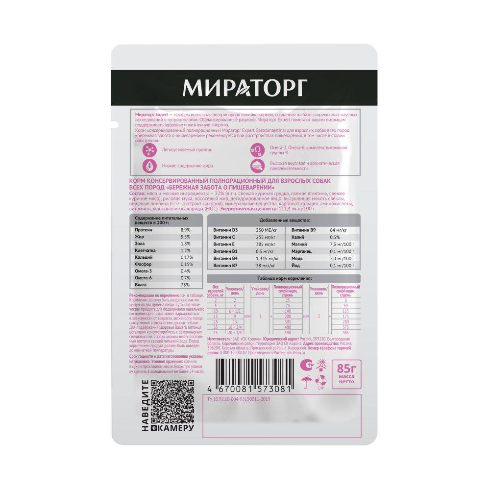 Мираторг Expert - профессиональная линейка кормов, созданная на базе современных научных исследований в нутрициологии. Сбалансированные рационы Мираторг Expert помогают вашим питомцам поддерживать здоровье и жизненную энергию. Gastrointestinal – ветеринарная диета, для защиты пищеварительной системы, которая способствует нормализации работы желудочно-кишечного тракта.