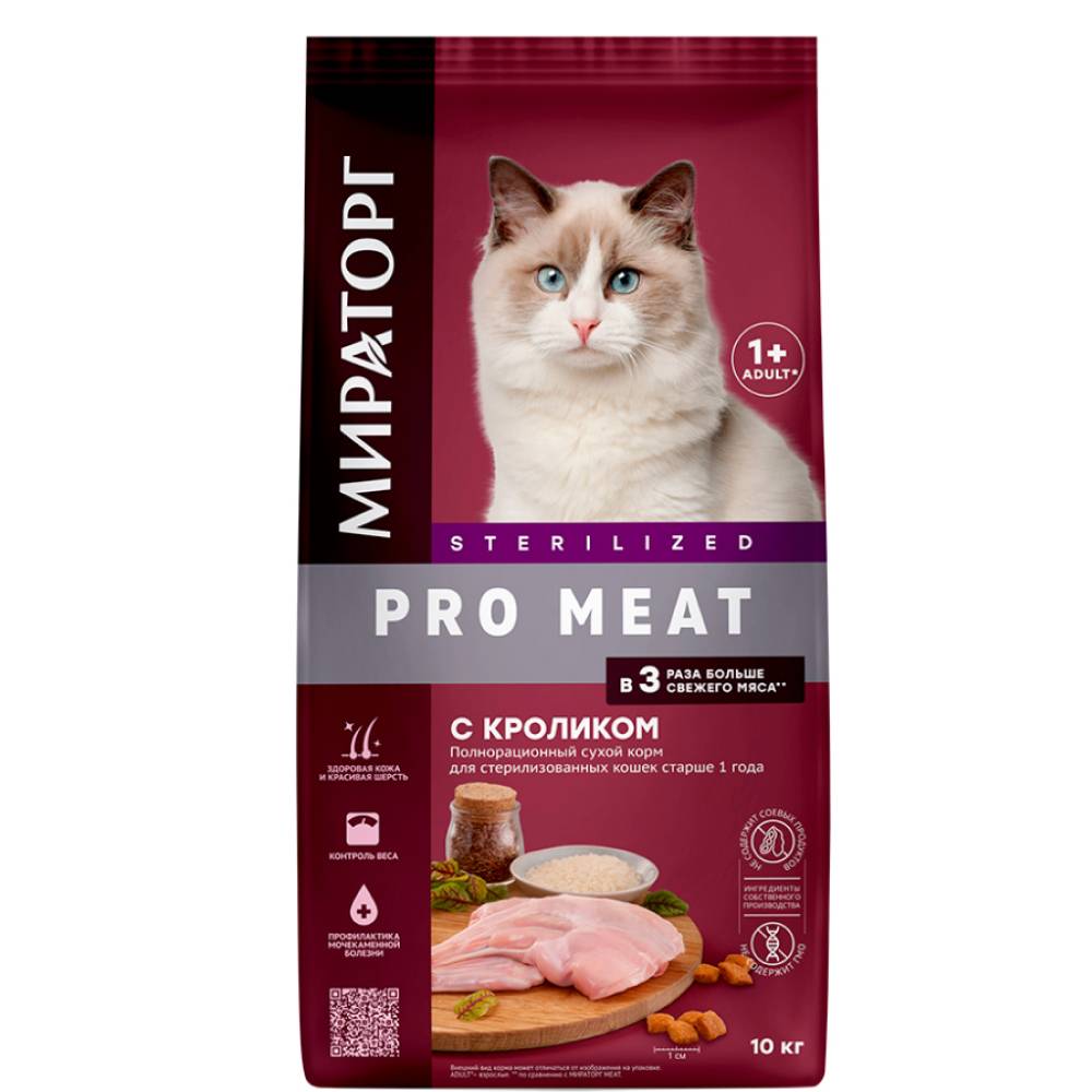 После кастрации и стерилизации предрасположенность кошек к появлению избыточной массы тела и мочекаменной болезни возрастает. С учетом этих особенностей был создан полнорационный корм PRO MEAT, который снижает вероятность появление лишнего веса и мочекаменной болезни.