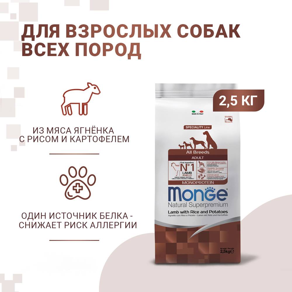 Monge (Монж) Dog Speciality Line Monoprotein сухой корм из мяса ягнёнка с рисом и картофелем для взрослых собак всех пород 12 кг.
