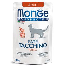 Monge Monoprotein Tacchino — паучи для взрослых кошек индейка — это полноценный сбалансированный рацион из мяса индейки для взрослых кошек с особыми потребностями.