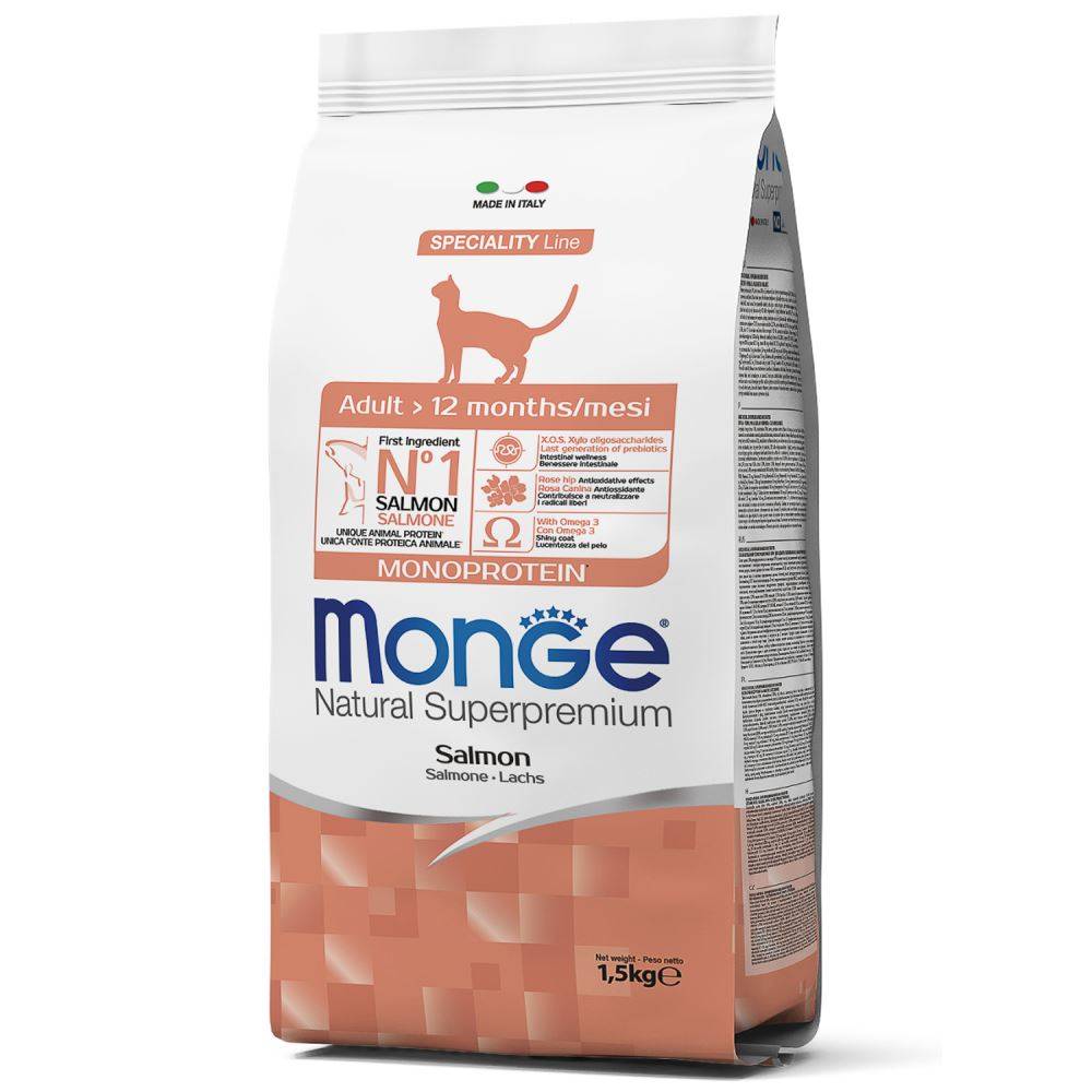 Monge Adult Cat Сухой корм для взрослых кошек, с лососем, 1,5 кг
