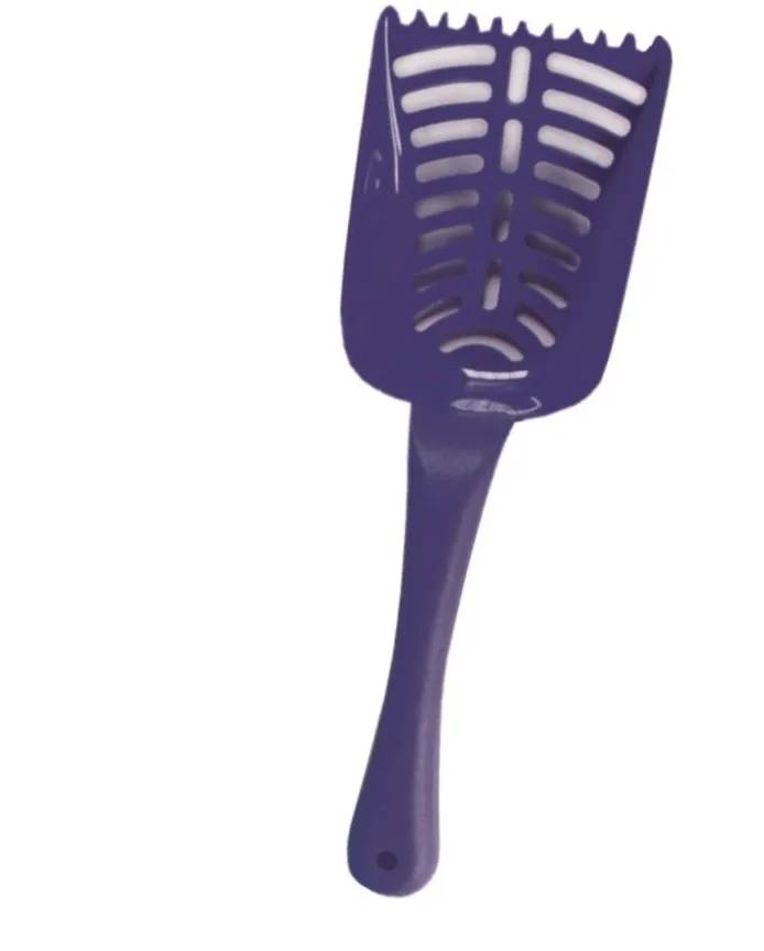 - Перфорированная поверхность отсеивает чистый наполнитель – размер отверстий на совке 0,6 см.