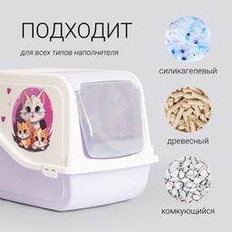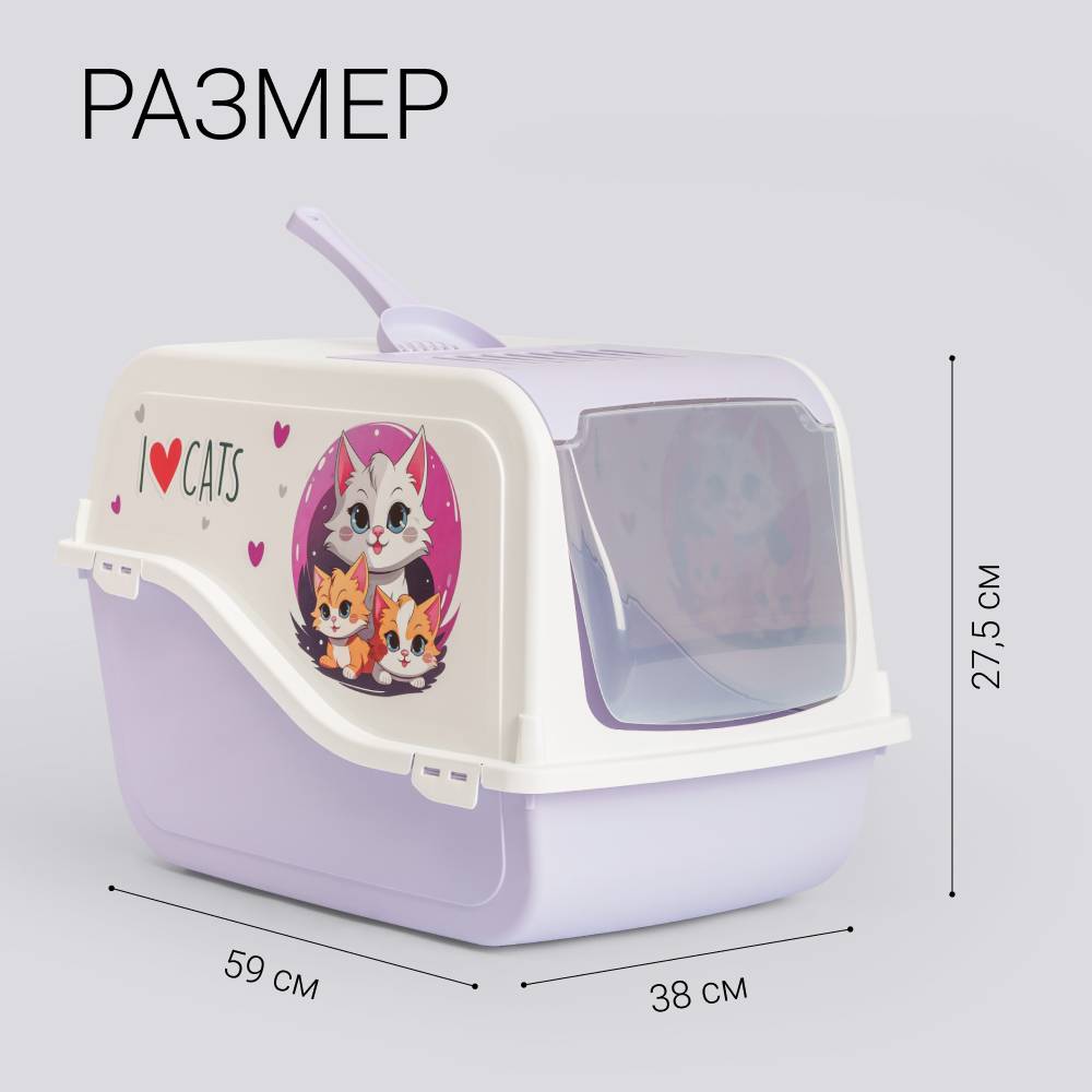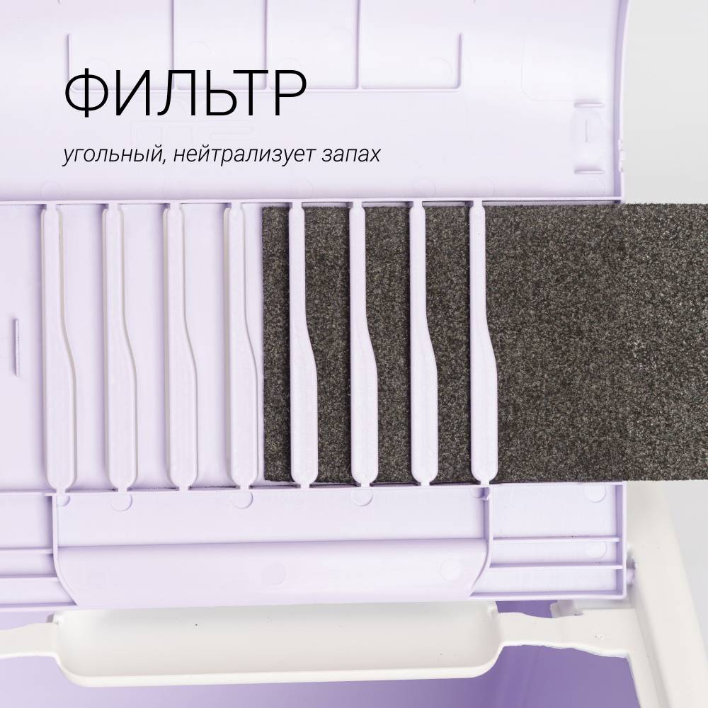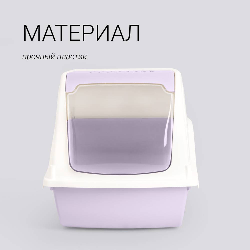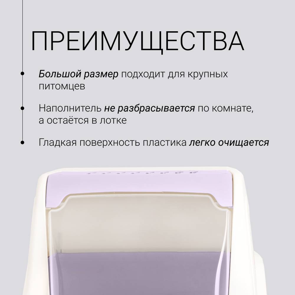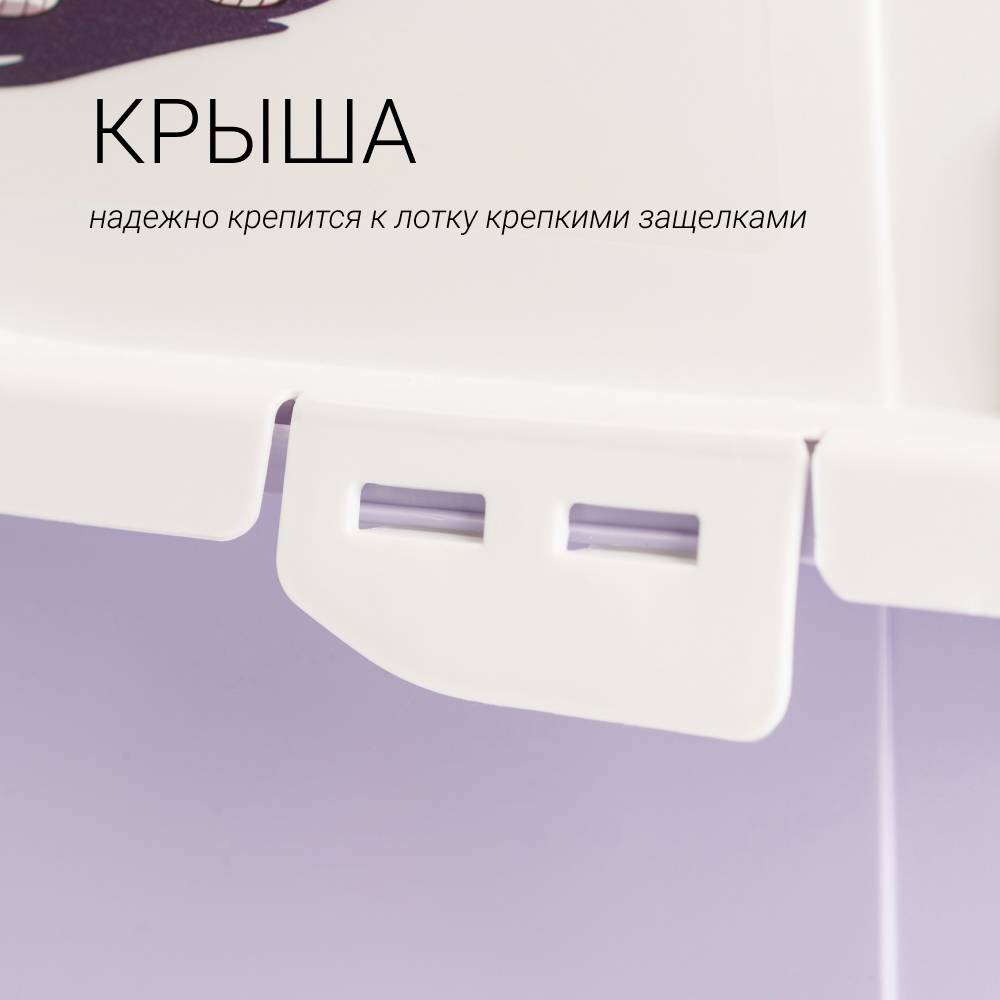 - Легко разбирается для удобства уборки и смены наполнителя – крышка соединяется с дном с помощью пластиковых креплений.