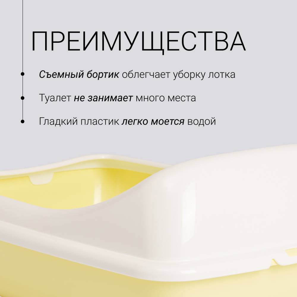• Идеален для котов, любящих закапывать – благодаря бортику наполнитель не высыпается.