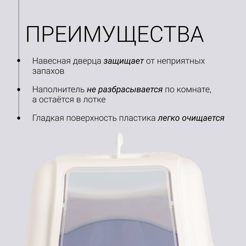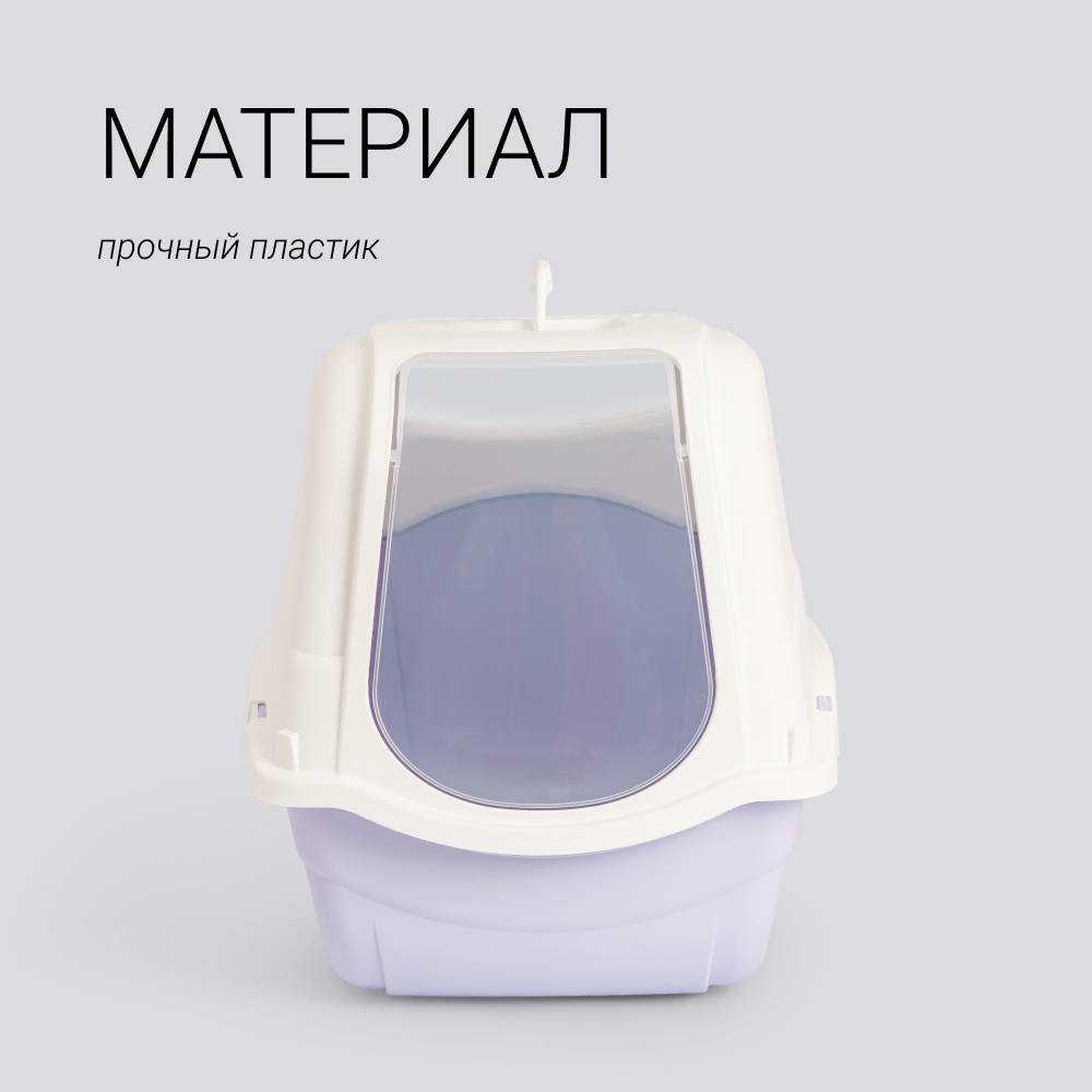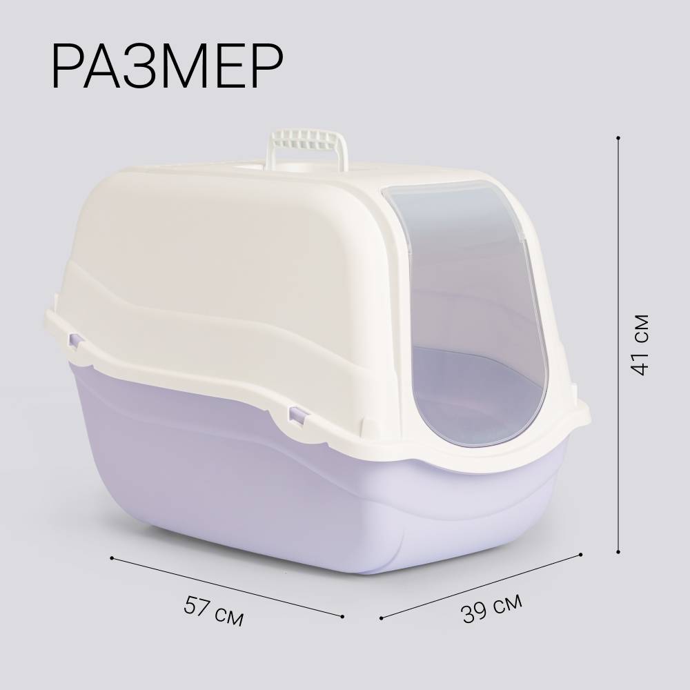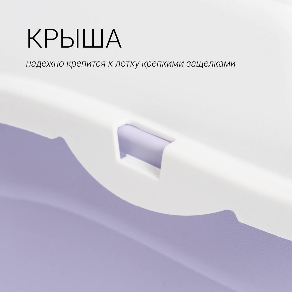 - Легко разбирается для удобства уборки и смены наполнителя – крышка соединяется с дном с помощью пластиковых креплений.