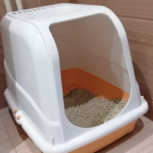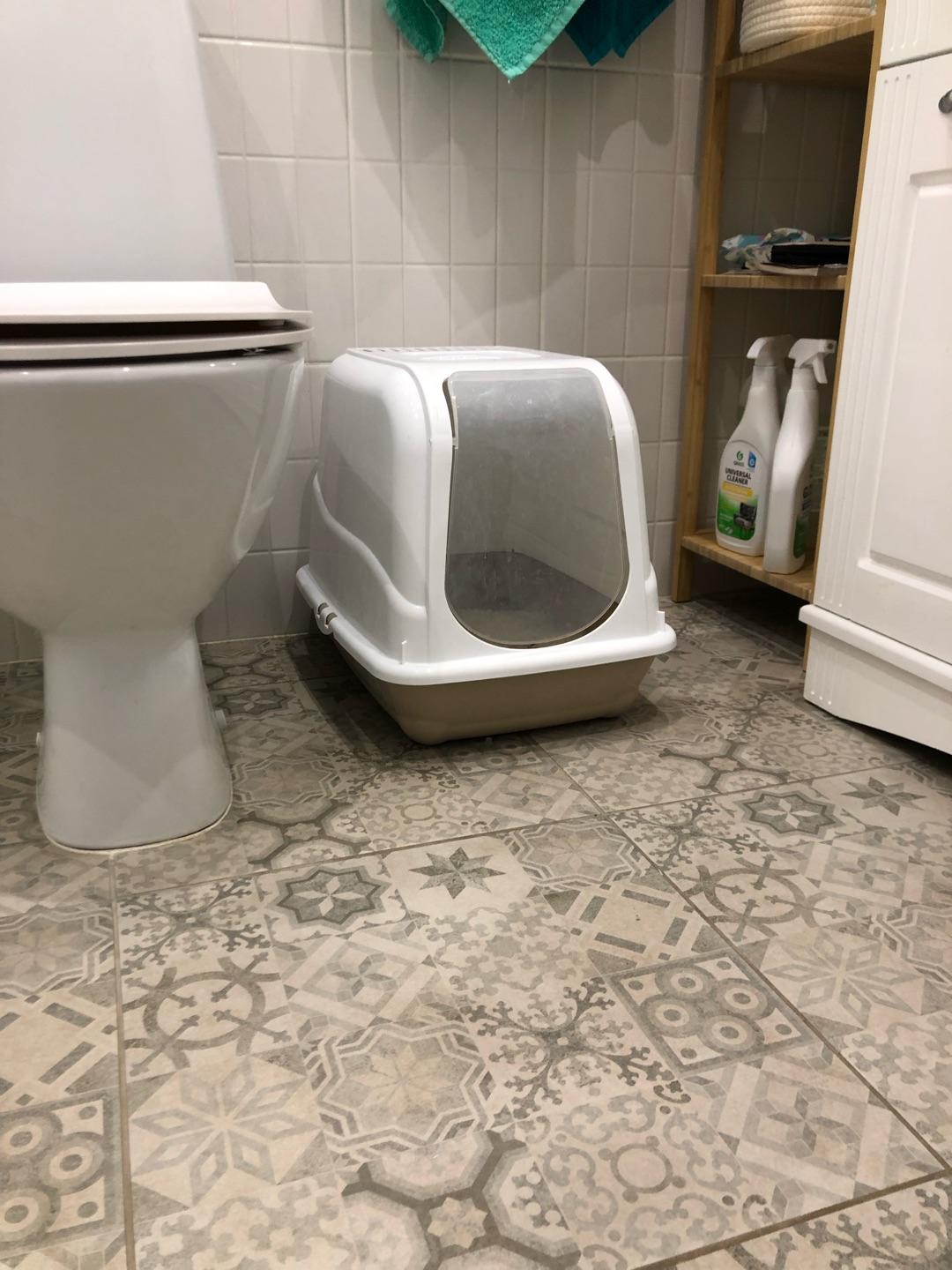 Прекрасная компактная и бюджетная модель, крупная кошка без труда помещается, легко мыть, первые дни крышку приоткрывали, чтобы котейка нашла вход, в доме стало гораздо чище!!! спасибо!