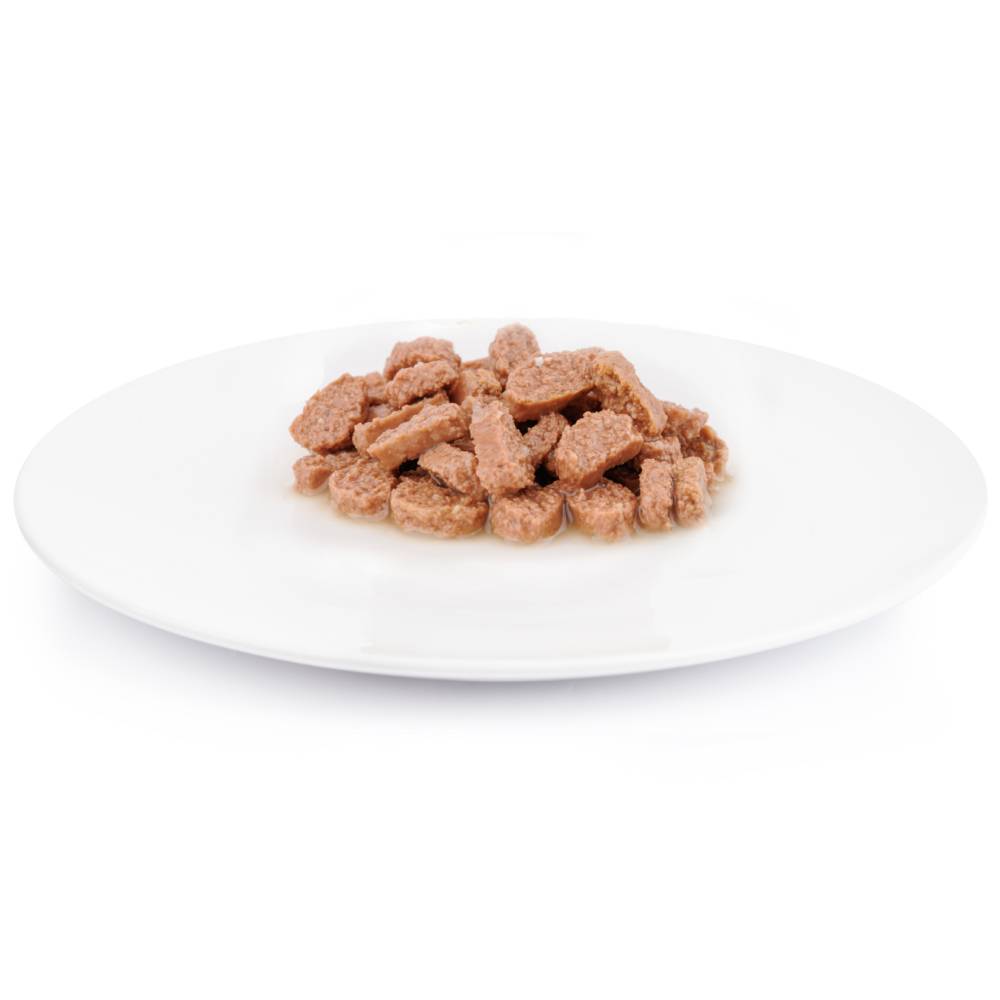 - Порция в 85 гр - рекомендуемая норма для разового приема пищи взрослой кошки среднего размера;