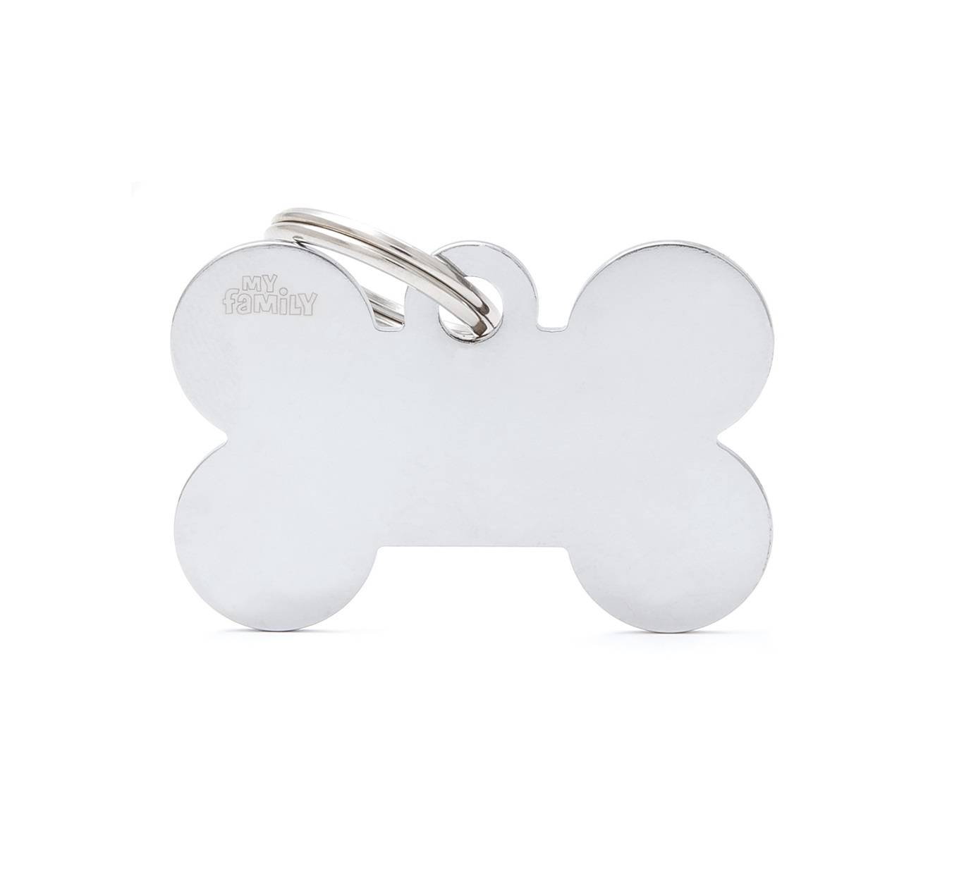 My Family Basic Косточка адресник хромированный маленький из базовой коллекции итальянской фирмы My Family поможет вашему питомцу не потеряться. На адресник можно нанести гравировку с вашим телефоном или адресом, и в том случае, если животное сбежало вы сможете быть уверены, что с вами смогут связаться и вернуть беглеца домой. Красивый декоративный адресник крепится к ошейнику, шлейке, поводку, он не погнется, не сломается. Удобное и надежное крепление позволяет перестегивать адресник, если вы решили сменить ошейник или шлейку.