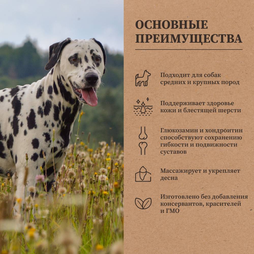 - Глюкозамин и хондроитин способствуют сохранению гибкости и подвижности суставов, что особенно важно для собак, страдающих от старения или суставных проблем.
