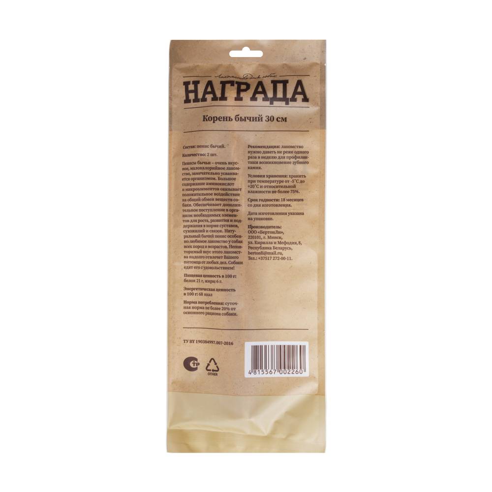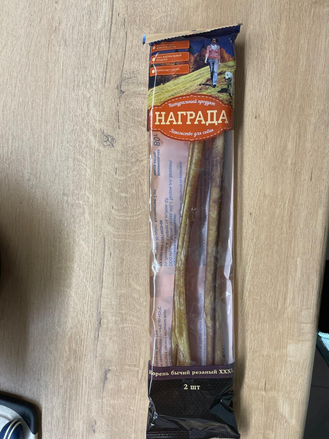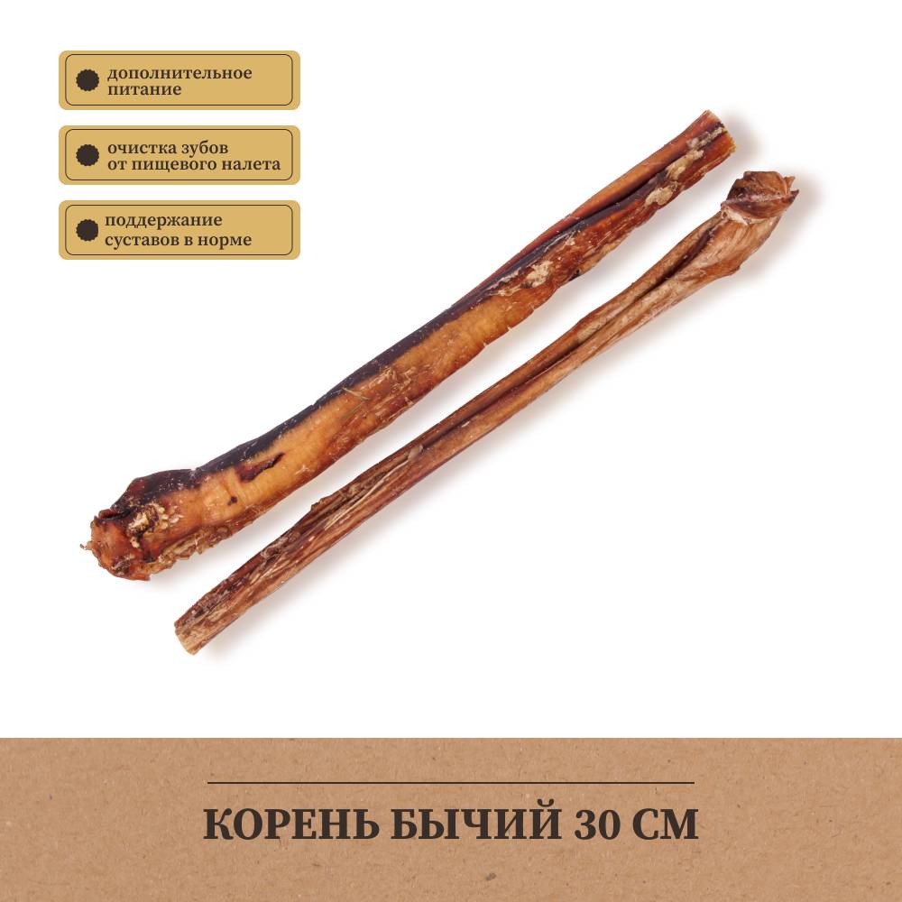 Постоянно покупаем бычий корень этого производителя. Довольны качеством. Приобретаем для щенков во время смены зубов. Полностью натуральный продукт, чистит зубки, массирует дёсны.Комментарий
