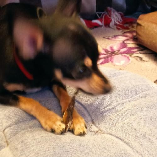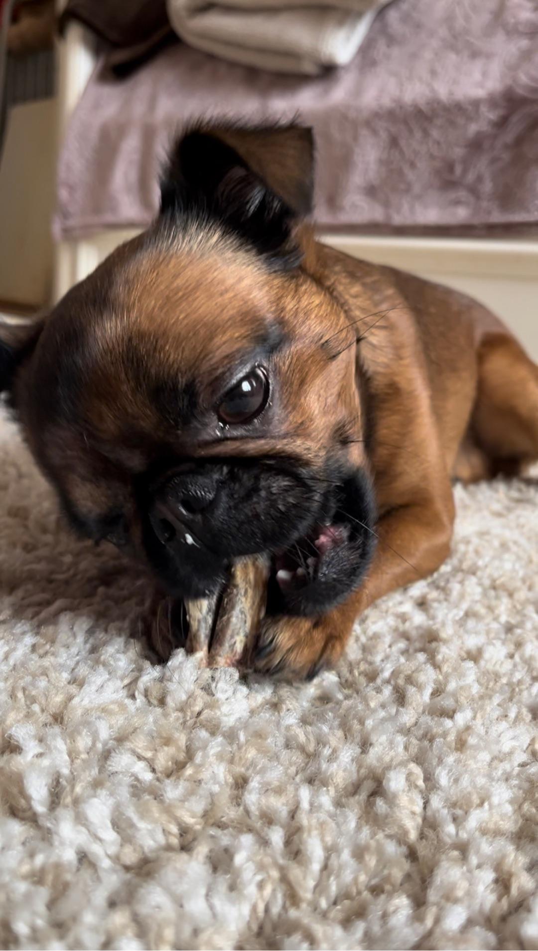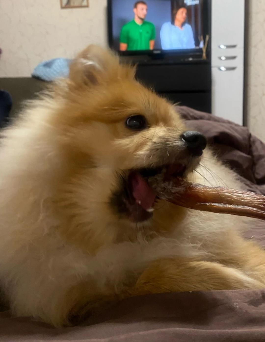 Щенку пол года. Попался хороший заводчик, который порекомендовал бычий корень как лакомство. Полюбил сразу! С трёх месяцев не знаем что такое испорченные вещи.Комментарий