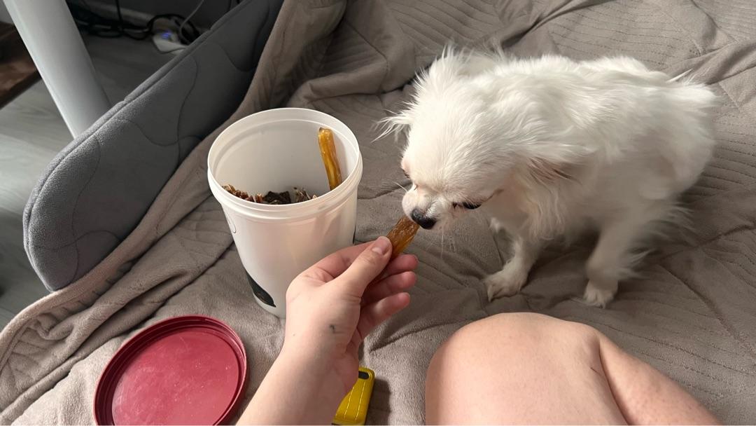 - Употребление сушеных лакомств убирает зубной налет и массирует десна.
