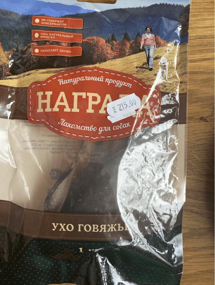 Хорошее качество товара, хватает на больший срок по сравнению со свиными ушами.Недостатки