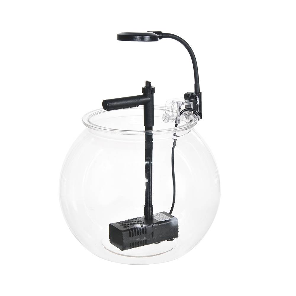 Аквариумный набор Naribo. В набор входит: аквариум-шар (пластиковый), фильтр, светильник, два USB адаптера. Аквариум объемом 4 литра, изготовлен из высококачественного пластика. В комплект входит фильтр мощностью 2Вт и производительностью 130 л/ч. Также входит светодиодный светильник мощностью 5Вт.
