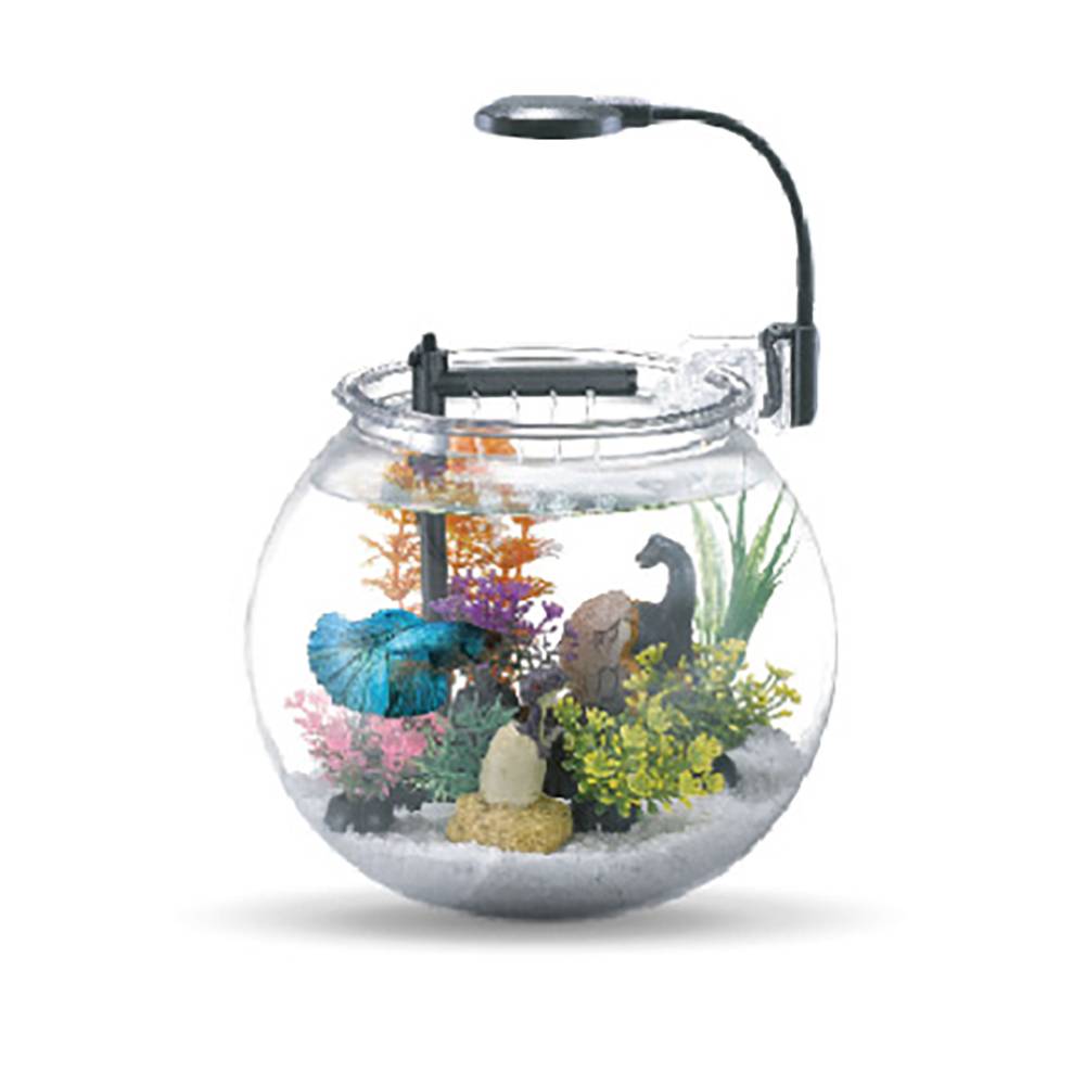 Аквариумный набор Naribo. В набор входит: аквариум-шар (пластиковый), фильтр, светильник, два USB адаптера. Аквариум объемом 4 литра, изготовлен из высококачественного пластика. В комплект входит фильтр мощностью 2Вт и производительностью 130 л/ч. Также входит светодиодный светильник мощностью 5Вт.