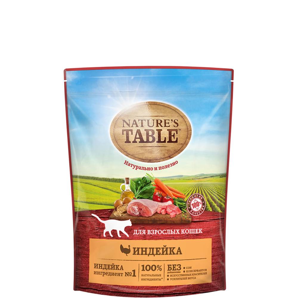 Nature’s Table™. Натурально и полезно! Рацион Nature’s Table Индейка содержит 100% натуральные ингредиенты высокого качества, получаемые от проверенных поставщиков: - ингредиент №1 – индейка – источник животного белка с высокой усвояемостью, диетическое мясо; - подсолнечное масло и рыбий жир – для здоровья кожи и блестящей шерсти; - натуральные овощи и злаки – содержат легкоусвояемые углеводы, минералы и витамины группы В для здорового пищеварения, поддержания микрофлоры кишечника и высокого уровня активности вашей кошки; - БЕЗ сои, искусственных красителей, усилителей вкуса и консервантов. Nature’s Table – вся польза природы для вашей кошки, чтобы она радовала вас здоровьем и красотой день за днем!