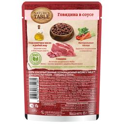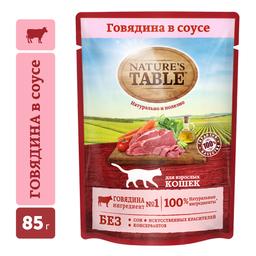 NATURE`S TABLE Влажный корм (пауч) для кошек, говядина в соусе, 85 гр.