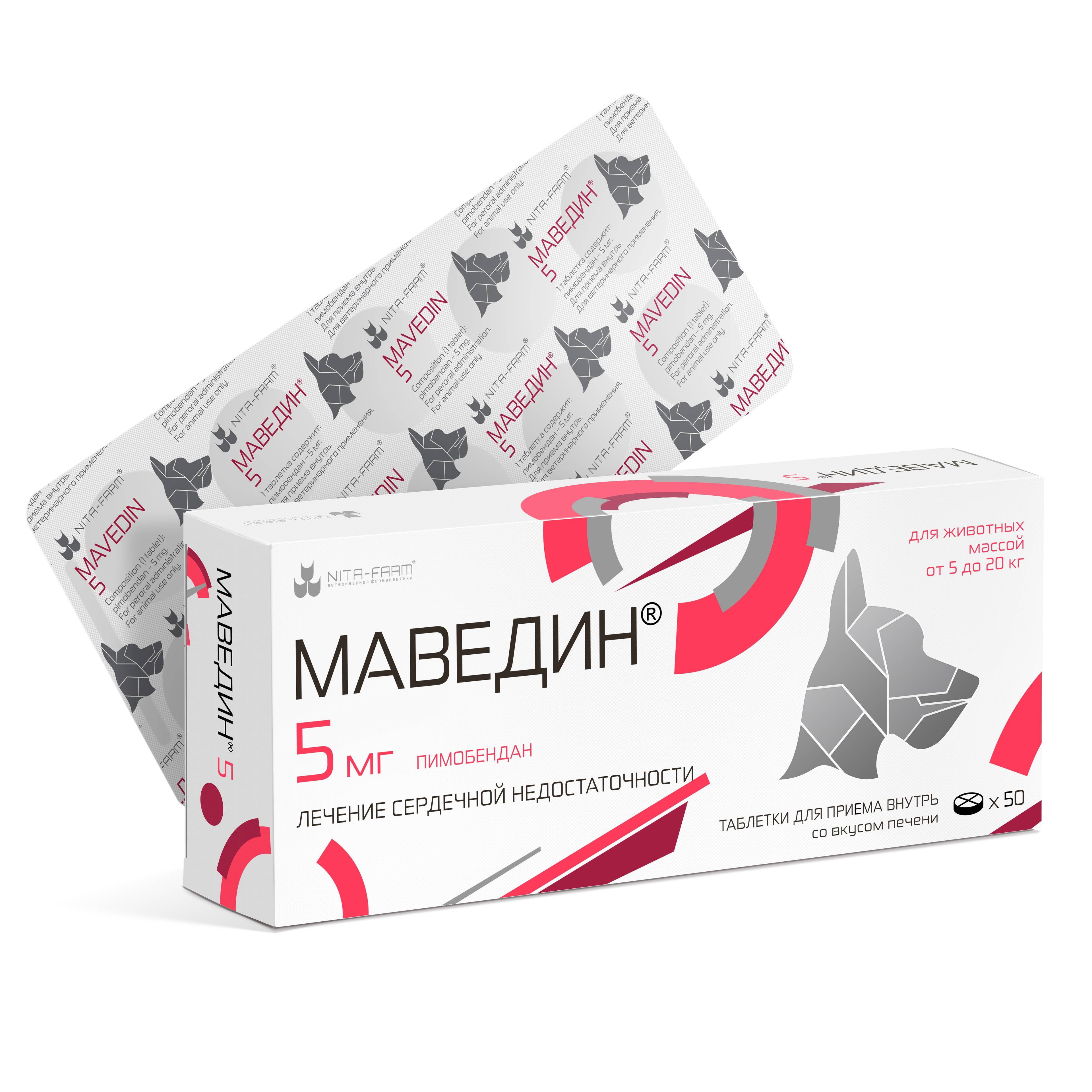 Маведин - лекарственный препарат для собак для применения при сердечной недостаточности, обладает положительным инотропным и вазодилатирующим (сосудорасширяющим) действием, повышает силу сердечных сокращений и уменьшает преднагрузку и постнагрузку на сердце.