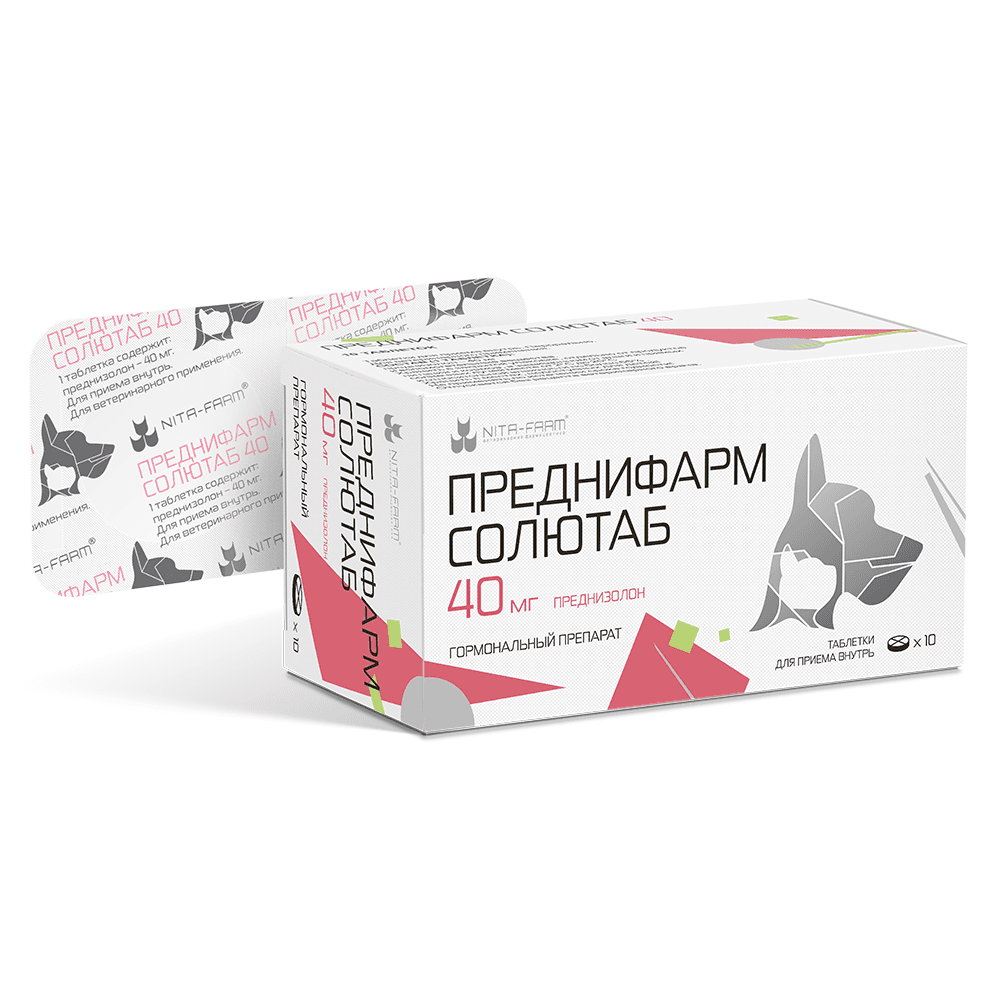 Nita-farm Преднифарм Солютаб Гормональный препарат для кошек и собак 40 мг, 10таблеток