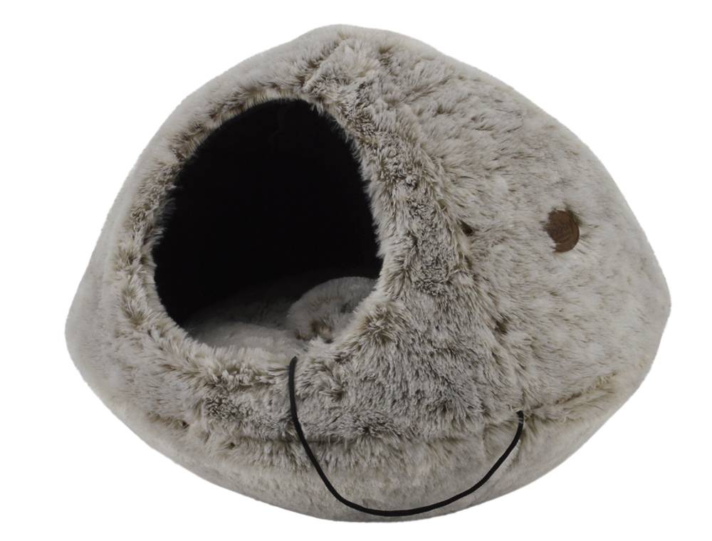 Домик для кошки SELLAM 43х32см коричневый. Преимущества: Оригинальный домик для кошек SELLAM, который можно трансформировать в лежак. Изготовлен из нежного длинноворсового плюша коричневого цвета. С мягкой игрушкой на веревке. Антискользящее основание.