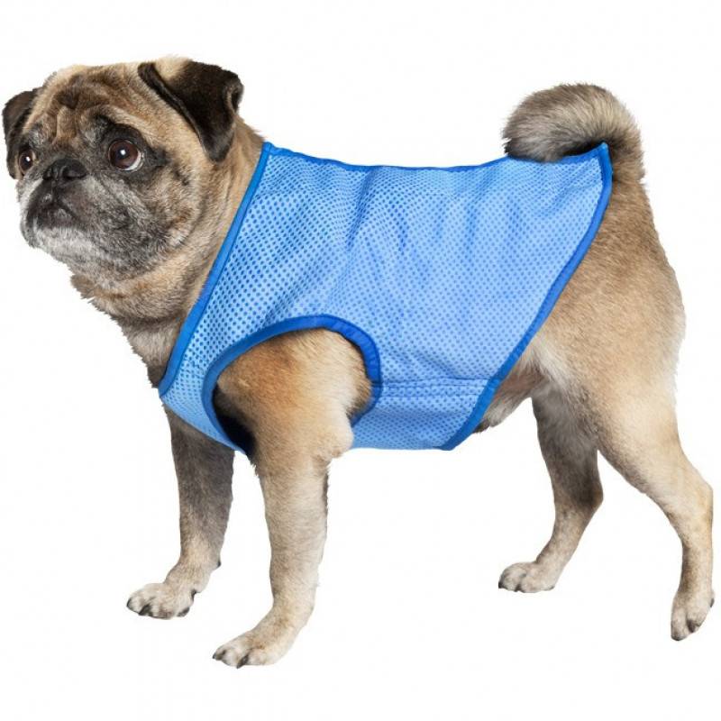 Погрузить жилет в холодную воду, аккуратно встряхнуть и надеть на собаку.