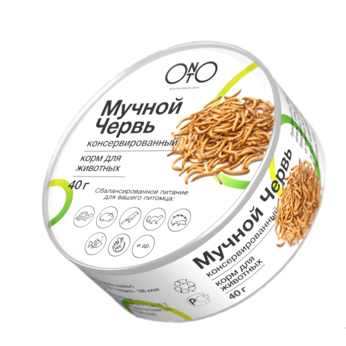 Мучной червь консервированный ONTO (Tenebrio molitor), 40 гр. Мучной червь или «мучник» немного жирнее, а также более калориен, чем сверчок. Подходит для ежей, рептилий, птиц, грызунов, млекопитающих и рыб, а также других насекомоядных животных.