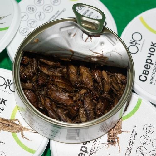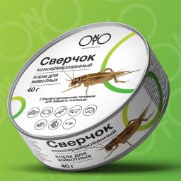 Консервированный домовый сверчок (Acheta domesticus), 40гр. Сверчок отлично себя показал при кормлении енотов, ежей, рептилий, птиц, грызунов, млекопитающих и рыб и других насекомоядных животных.