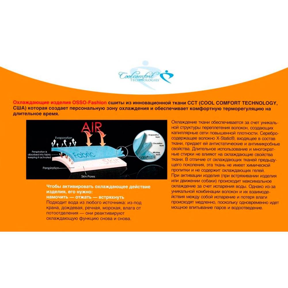 - Охлаждающая попона из ткани ССТ (COOL COMFORT TECHNOLOGY, США) позволяет собакам легче переносить жару, делает более комфортным их пребывание на солнце во время прогулки, в транспорте и на выставках, проходящих на открытом воздухе иди в душных помещениях.