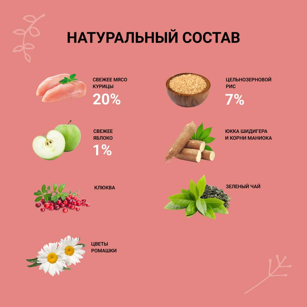 - 20% свежей курицы гарантирует вкусовую привлекательность для питомца.