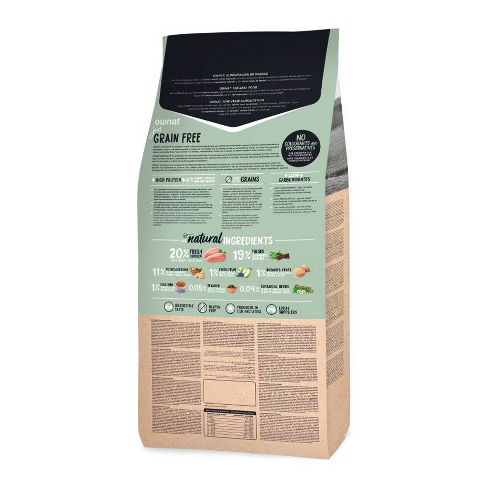 OWNAT JUST GRAIN FREE. ADULT CHICKEN – это сбалансированное питание для взрослых собак всех пород, произведённое в Испании.